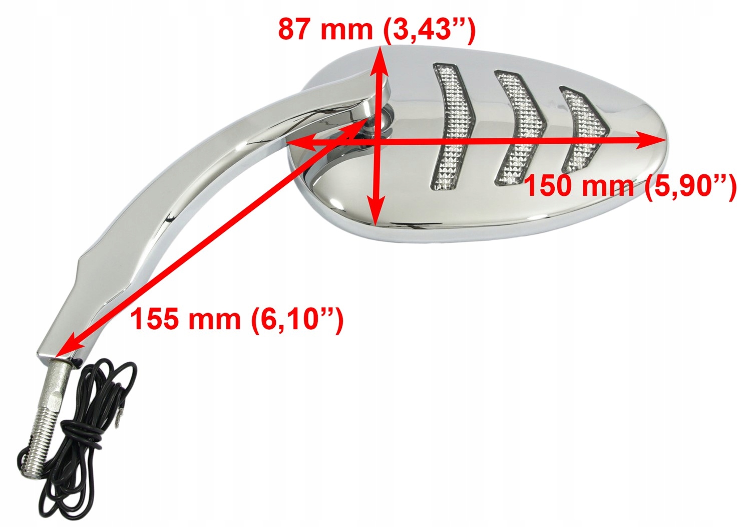 - Гвинти M8 на цих дзеркалах мають стандартну довжину, яка використовується на мотоциклах Harley-Davidson (45 мм).
