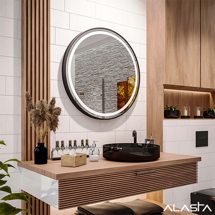 На цьому аукціоні ви купуєте дзеркало зі світлодіодним підсвічуванням і рамою з порошковим покриттям. Колір рами, доступний на цьому аукціоні: Чорний.