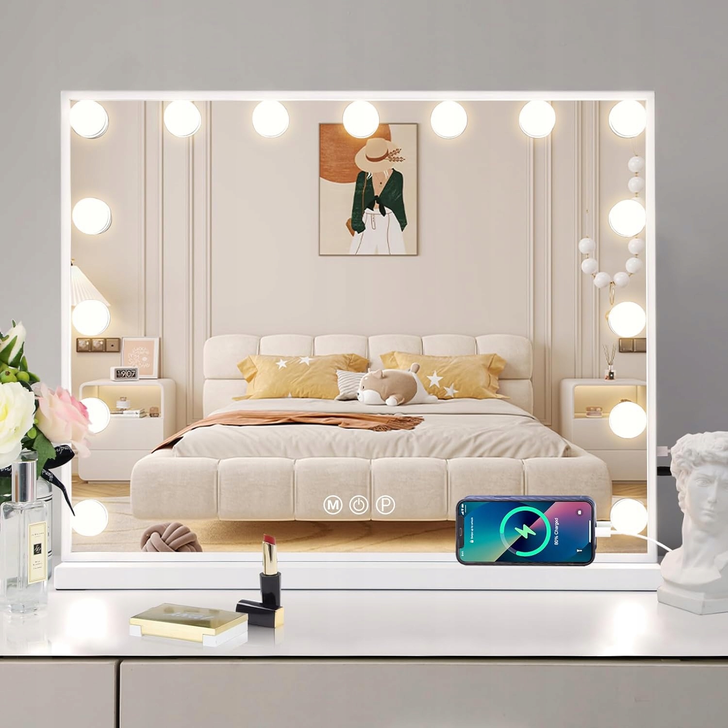 ✅Голлівудське дзеркало з 15 лампами (діаметром 3,5 мм) забезпечує ідеальне освітлення незалежно від переважаючих умов у кімнаті длярізні потреби в макіяжі.