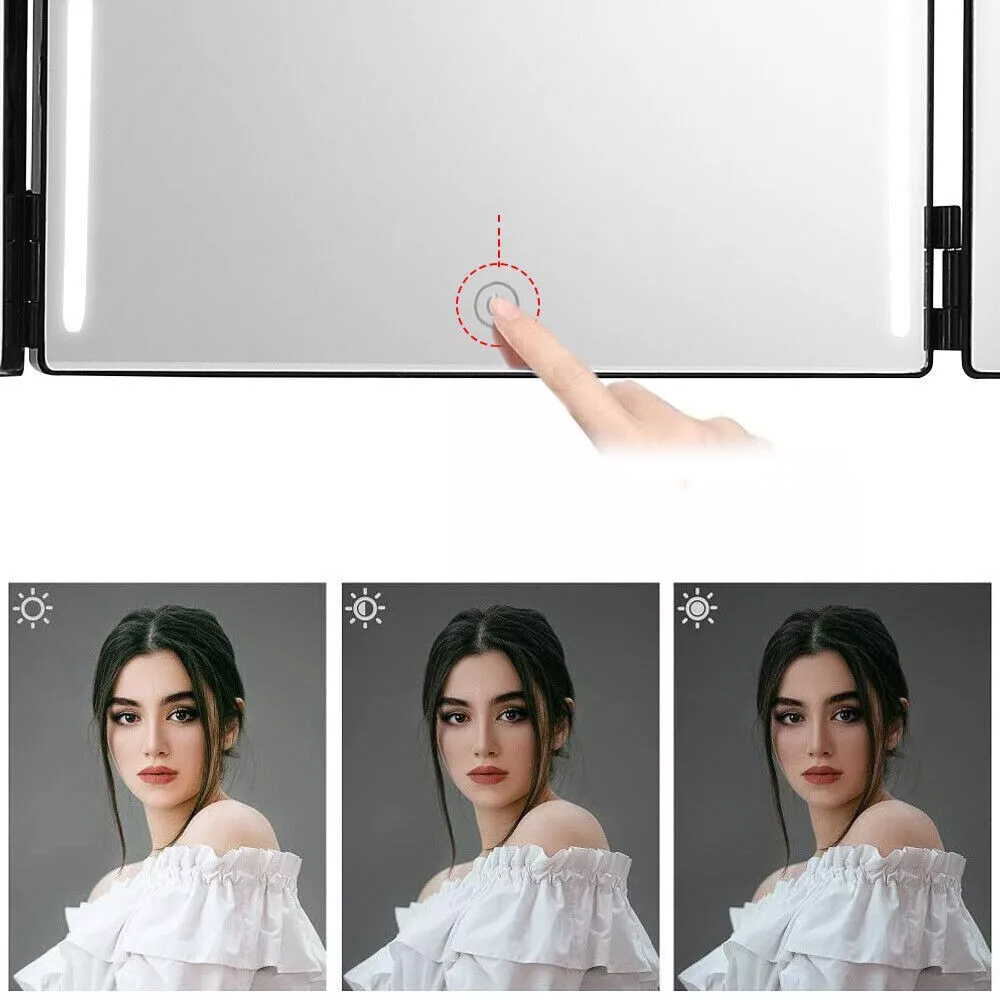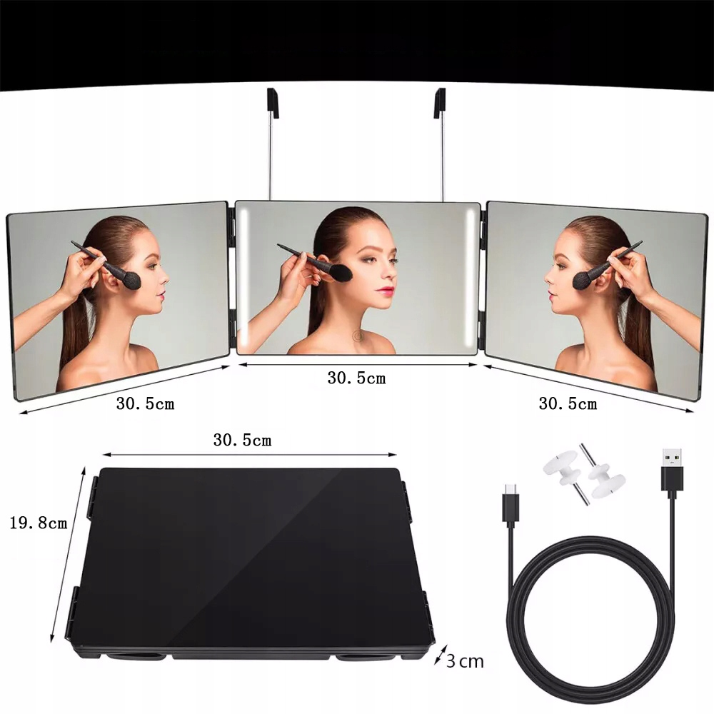 ✔ ›【Конструкція Забезпечення універсального зору】 тристороннє дзеркало з світлодіодами дозволяє бачити передню, сторону і навіть задню частину голови. Завдяки цьому ви чітко побачите кожен куточок голови та створить ідеальну зачіску та макіяж.