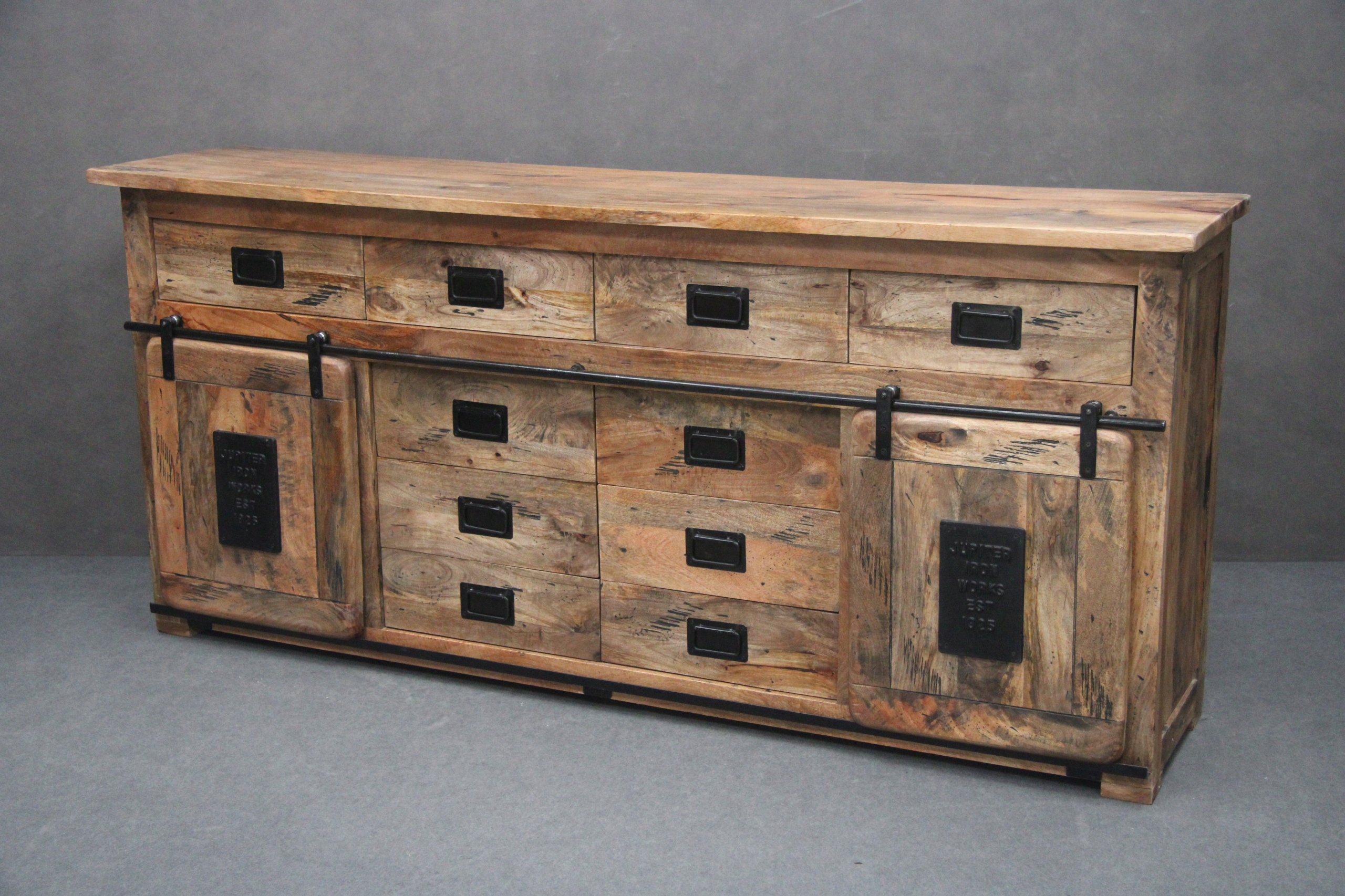 Дзеркало нове в стилі горища / старовинного. Зроблено з індійського дерева манго. Кожен предмет меблів унікальний завдяки ручному виробництву та видам дерева. Він відрізняється кольорами та структурою дерева (невеликі тріщини, дірки, делікатні порожнини, які зроблені навмисно), це підкреслює індивідуальність меблів. Двері, зроблені в промисловому стилі на валиках з металевою обробкою на фронтах.