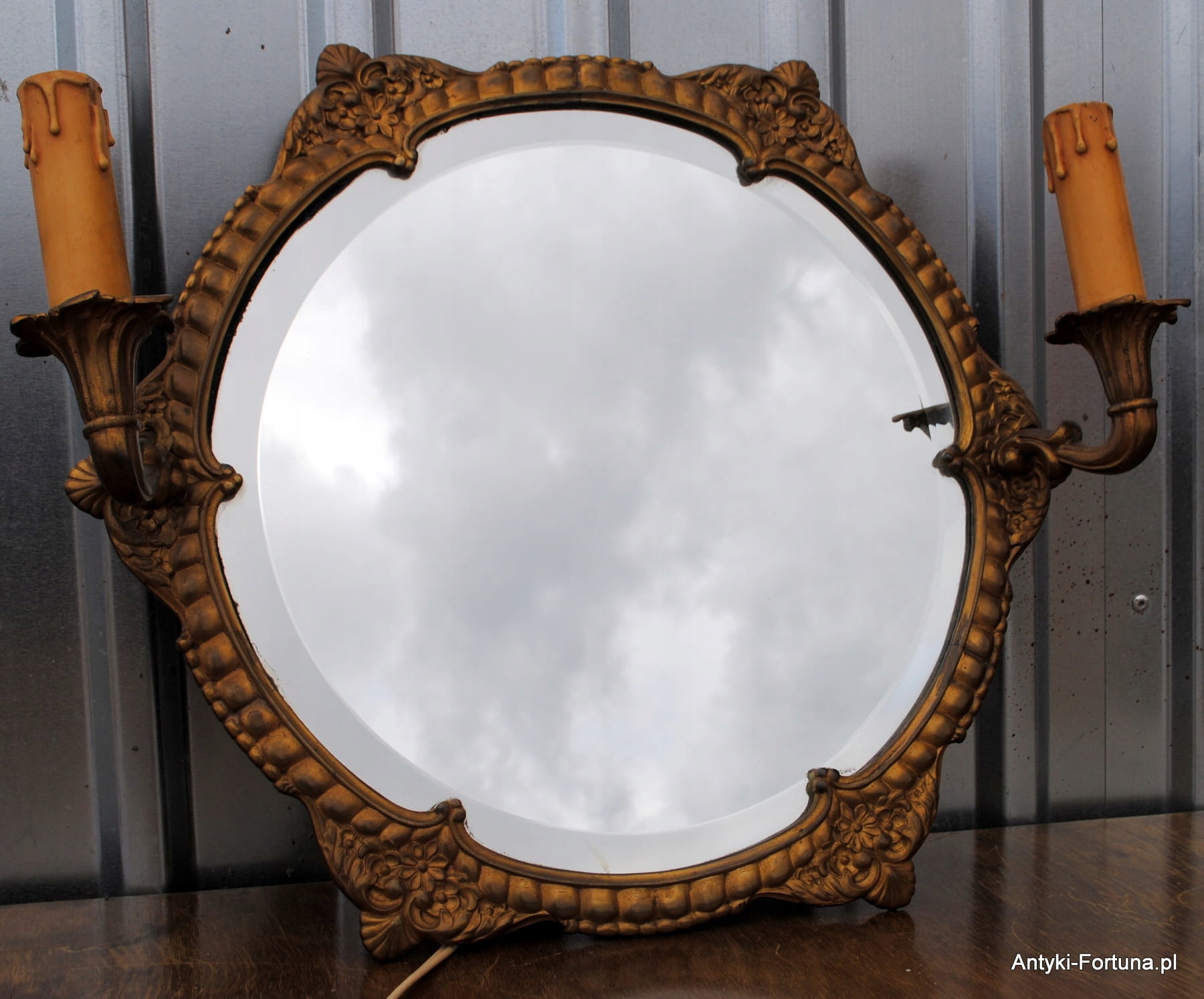 Дуже гарне старе кришталеве дзеркало зі скошеними розмірами: відстань між лампами 50 см, дзеркало з рамою діаметром приблизно 45 см, діаметр самої поверхні дзеркала 34 см, лампи, очевидно, працюють.
