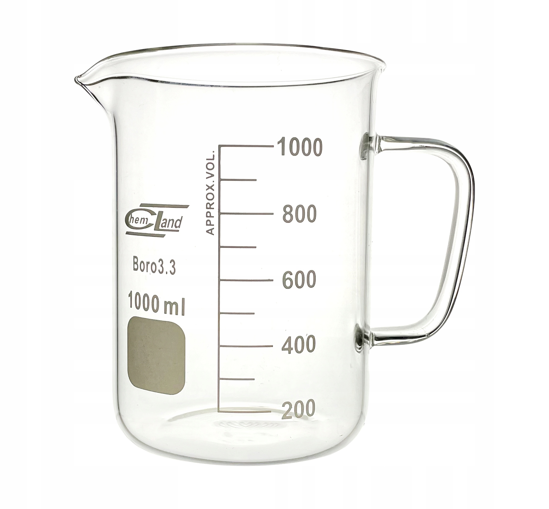 ДЗЮВ СКЛЯНИЙ З РУЧКОЮ НИЗЬКИЙ 1000 мл ( CHEMLAND )