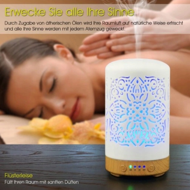 Просунута ультразвукова дифузор прохолодний туман, що має 4 таймерів, цей прекрасний декоративний елемент працює стабільним і тихим. Це найкращий досвід для вас та вашої родини. Це чудовий супутник, щоб зосередитись, вивчати, йогу чи сон. Виставковий продукт! Ефірні олії для зволожувача не прикріплені до набору!