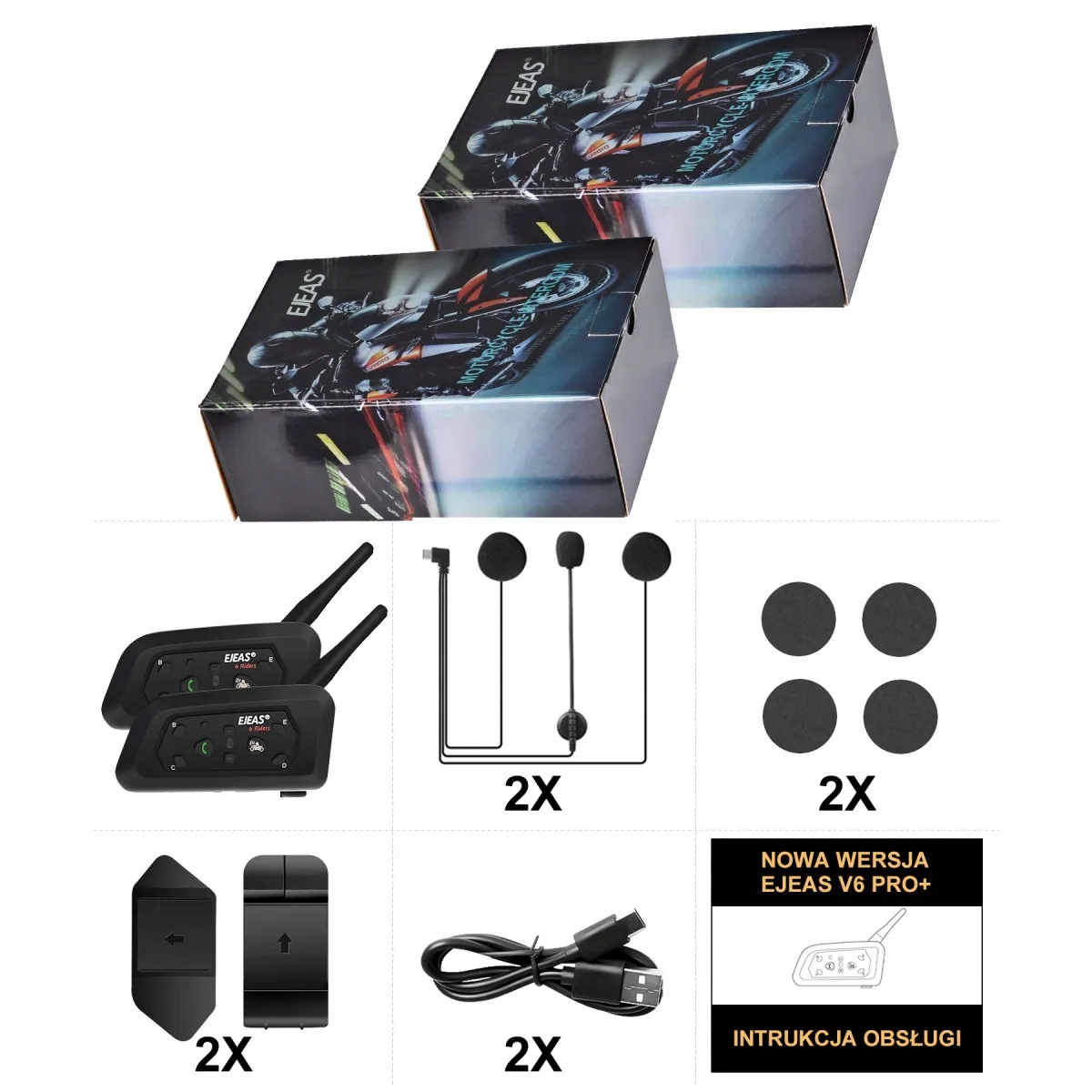 ✔️ 2x Motorcycle Intercom Ejas V6 Pro Type Typ-C 2024