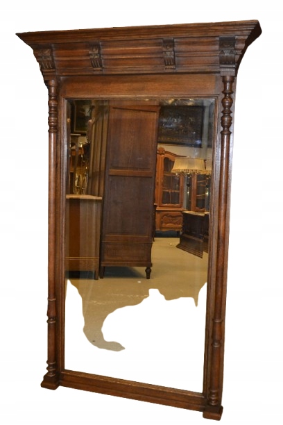 Красиве, велике еклектичне дзеркало. Дзеркало походить з початку 20 століття. Рама виготовлена з суцільного дуба, він смачно оформлений. Дзеркальна поверхня зачарована. На поверхні є кілька видимих точок (такі чарівність старих дзеркал) не фіксує меблі, дзеркало виглядає чудово