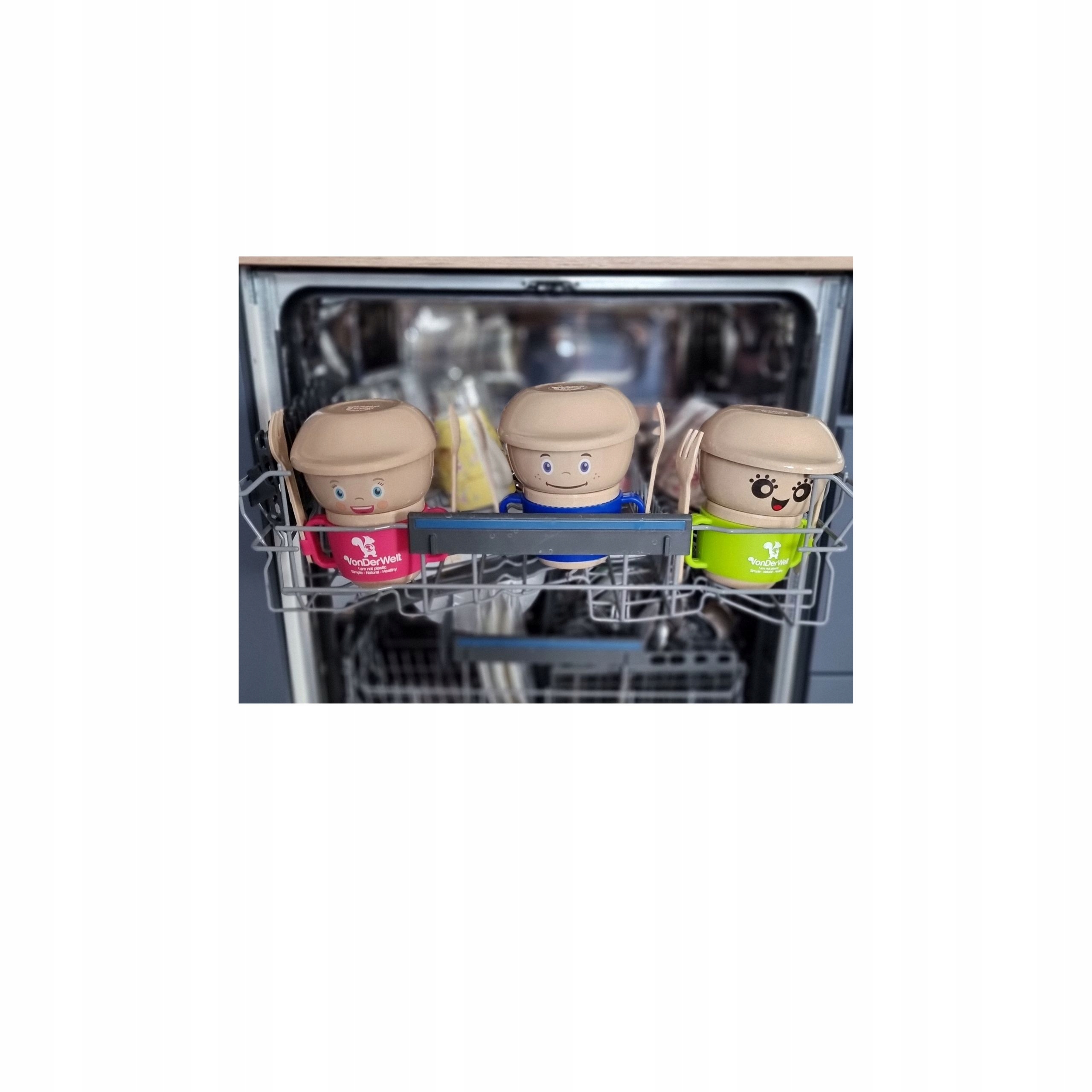 міцний набір посуду для дітей забезпечує тривале життя. Його можна промивати в посудомийній машині і використовувати в мікрохвильовій печі протягом трьох хвилин. Вимикає температуру від -30 ° C до 120 ° C
