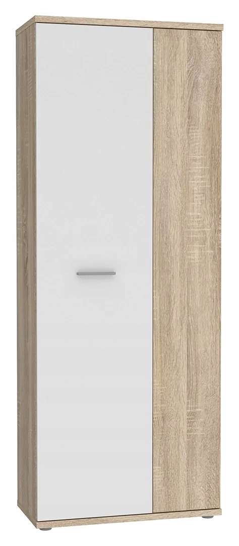 Сучасний гардероб 2 двері з поличками net106 був пофарбований до білого декору Uni та дуба Сонома з чітким малюнком деревини. Таким чином, меблі дозволяє скрасити та оптично збільшувати кімнату, додаючи затишок і клас. У гардеробу є простий блок, що відповідає мінімалістичним інтер’єрам. Він також приносить декору витонченість та свіжість, яка заснована на неускладнених формах. Його можна використовувати в будь -якій кімнаті через невеликий розмір та дизайн, що не переповнює розташування.