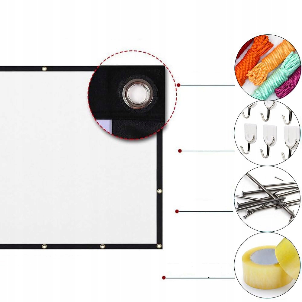 Матеріал 100% без зморшок - 150-дюймовий екран проектора виготовлений з м'якого на дотик та еластичний поліефірний матеріал, який забезпечує максимальну продуктивність без зморшок, забезпечуючи більш чітке зображення, яскравіші кольори та без зменшення. Ми запевняємо вас, що всі наші екрани кінотеатру проходять суворий процес контролю якості перед доставкою, тому на екрані немає плям, які могли б погіршити перегляд. Примітка. Перед покупкою зверніть увагу на розмір!