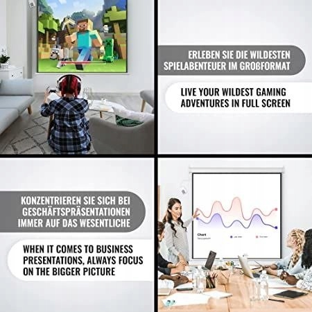 комфортний екран проекції з дистанційним керуванням для відображення різкого зображення високої якості та роздільної здатності. Це полотно забезпечує максимальний комфорт, оскільки воно має регульовану висоту. Ви можете редагувати потрібний формат. Полотно має чорні краї для кращого контрасту. Сліпий екран підходить для встановлення на стіні та стелі. Нижній стрижень підтягує вінілову тканину, щоб запобігти всілякі складки. За допомогою доданого пульта дистанційного керування ви можете поновити, відрегулювати та розширити екран.