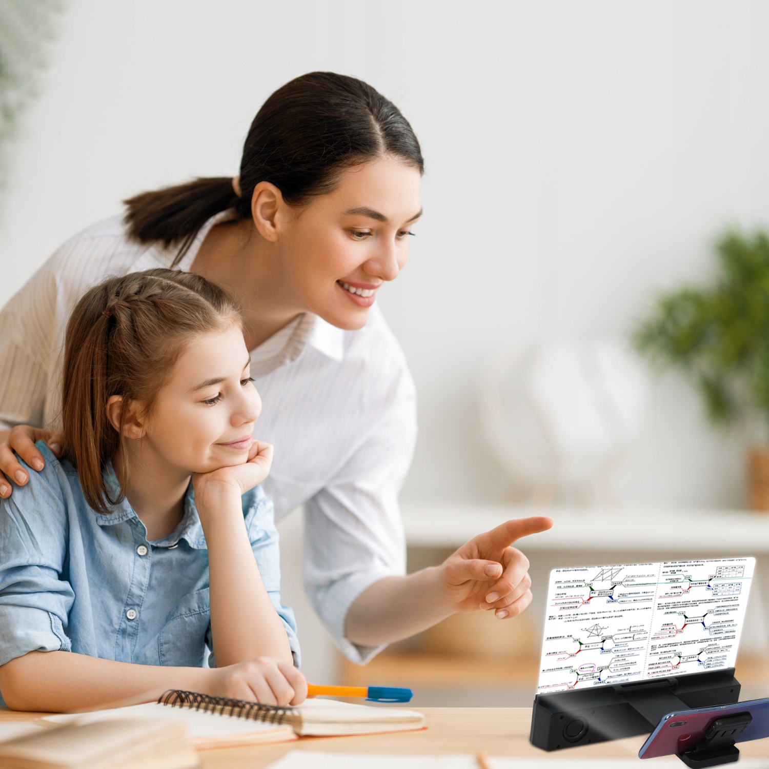 12-дюймовий журнал для екрана мобільного телефону використовує технологію оптичної лінзи з високою роздільною здатністю, яка може збільшити зображення на мобільному телефоні на 2,2 рази. Зображення чіткіше і яскравіше, з сильнішим почуттям динаміки, яке мігозив візуальний дискомфорт і втома. Концентрація на маленькому екрані тривалий час.