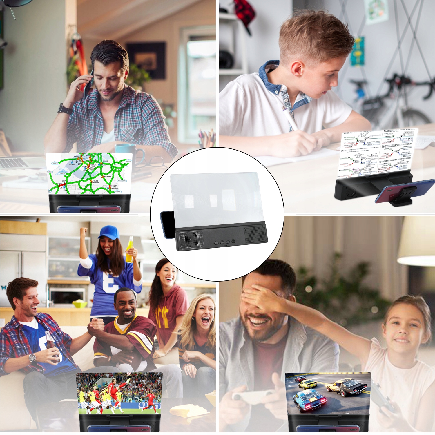 Цей підсилювач проекції мобільного телефону-це підсилювач скринінгу з високою роздільною здатністю з Bluetooth Sound. об'єктив приймає 12 -дюймовий акриловий оптичний об'єктив Френеля з високою роздільною здатністю, щоб запобігти синьому світлу, завдяки якому ефект бачення зображення є реалістичним та тривимірним.
