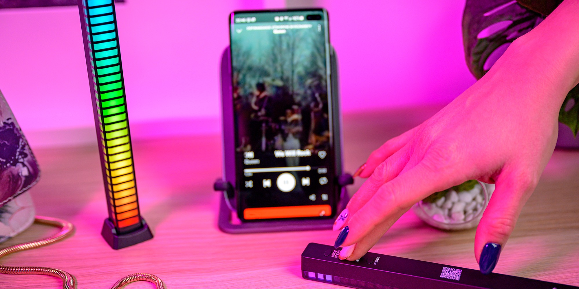 Пристрій пропонує 9 унікальних світлових анімацій, які по-різному реагують на звук через зміну кольорів світлодіодів. Крім того, кожен режим може працювати на основі 17 колірних варіантів візуалізації. Це аж 153 унікальні комбінації! Додавши до цього можливість регулювати рівень яскравості та швидкість відображуваних анімацій, а також колірне коло, доступне на рівні програми, отримаєте