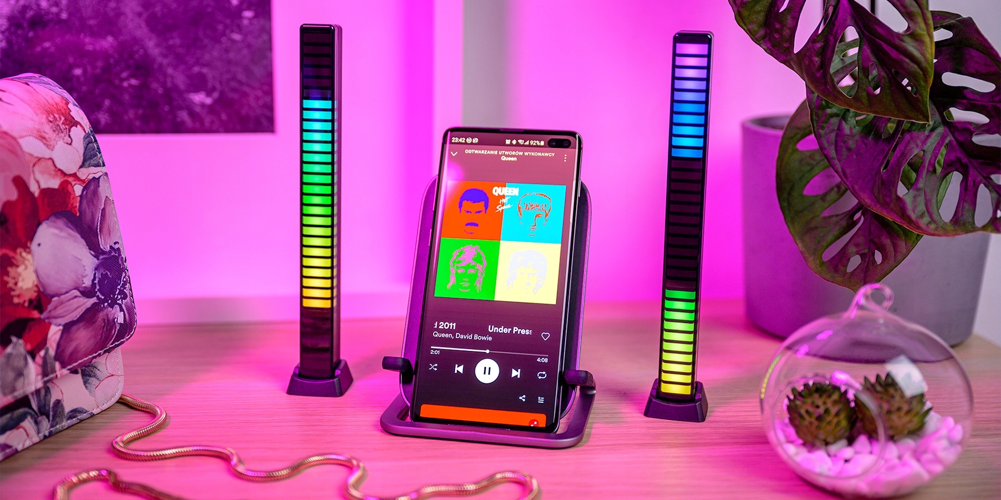 Еквалайзер RGB Redleaf 32LED 3d — це унікальна світлова колона, оснащена 32 світлодіодами, яка реагує на звук у реальному часі. Підкресліть звучання улюблених пісень або створіть неповторну атмосферу вдома! Це також чудове доповнення до ігрової підставки та альтернатива технології Ambilight, яка використовується в телевізорах. Пристрій пропонує 153 комбінації світлових анімацій у різних кольорах. Додаток для смартфона дозволяє дистанційно керувати панеллю, а також керувати групою з кількох пристроїв одночасно. Спеціальний режим роботи означає, що еквалайзер також може працювати як... аркадна гра. Redleaf 32LED 3d також пропонує унікальний ефект тривимірної анімації. Світлодіодна панель простягається від передньої частини еквалайзера до його бічних країв, що робить візуалізацію ще кращою.