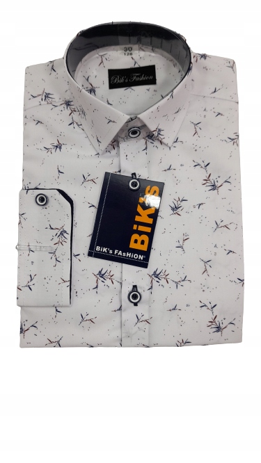 Елегантна біла сорочка для хлопчика з довгими рукавами та візерунком з гілочок.