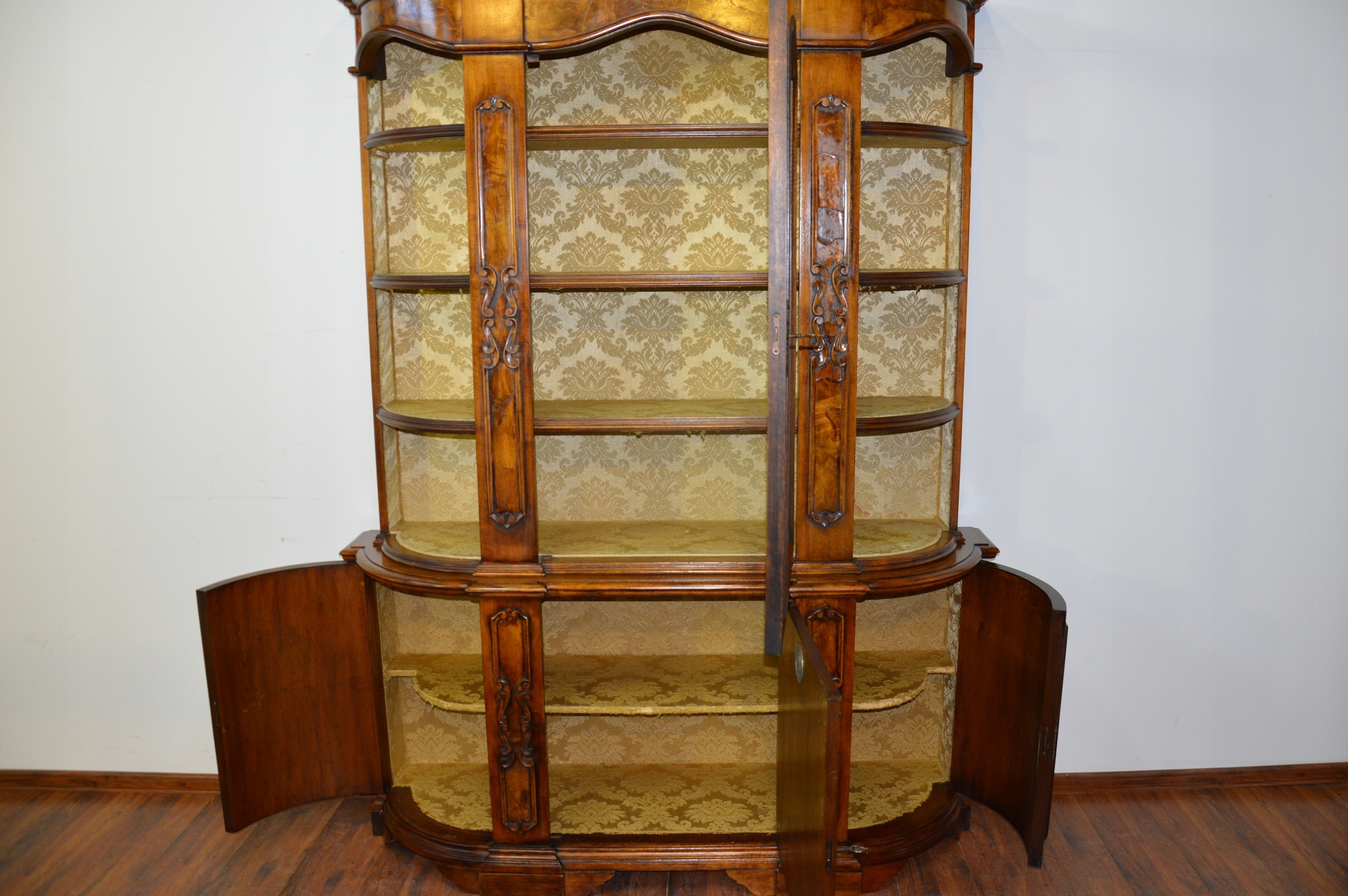 Елегантна вітрина в стилі бароко. Країна походження: Франція. Виготовлена з горіхового дерева. Замки працюють, два ключа в комплекті.Меблі неймовірно шикарні. Меблі в дуже хорошому стані, готові до розміщення.