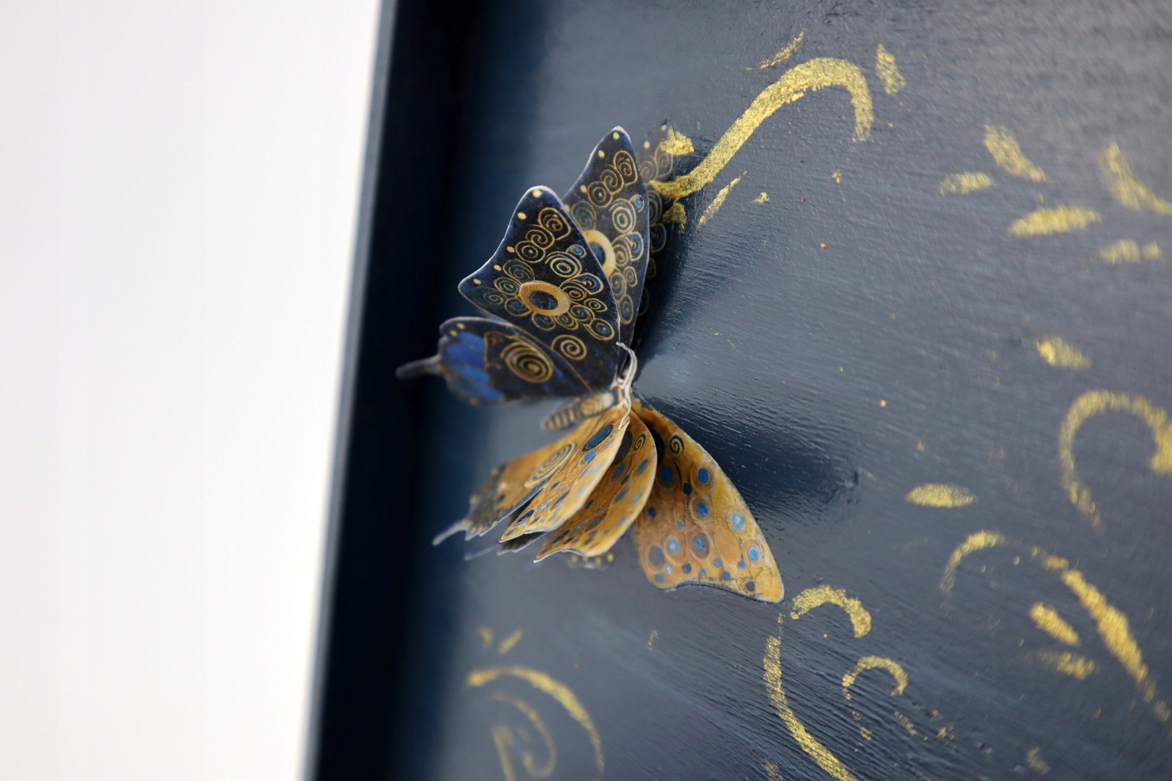 Елегантна коробка з темно -морського флоту з 3D -метеликом із золотими прикрасами