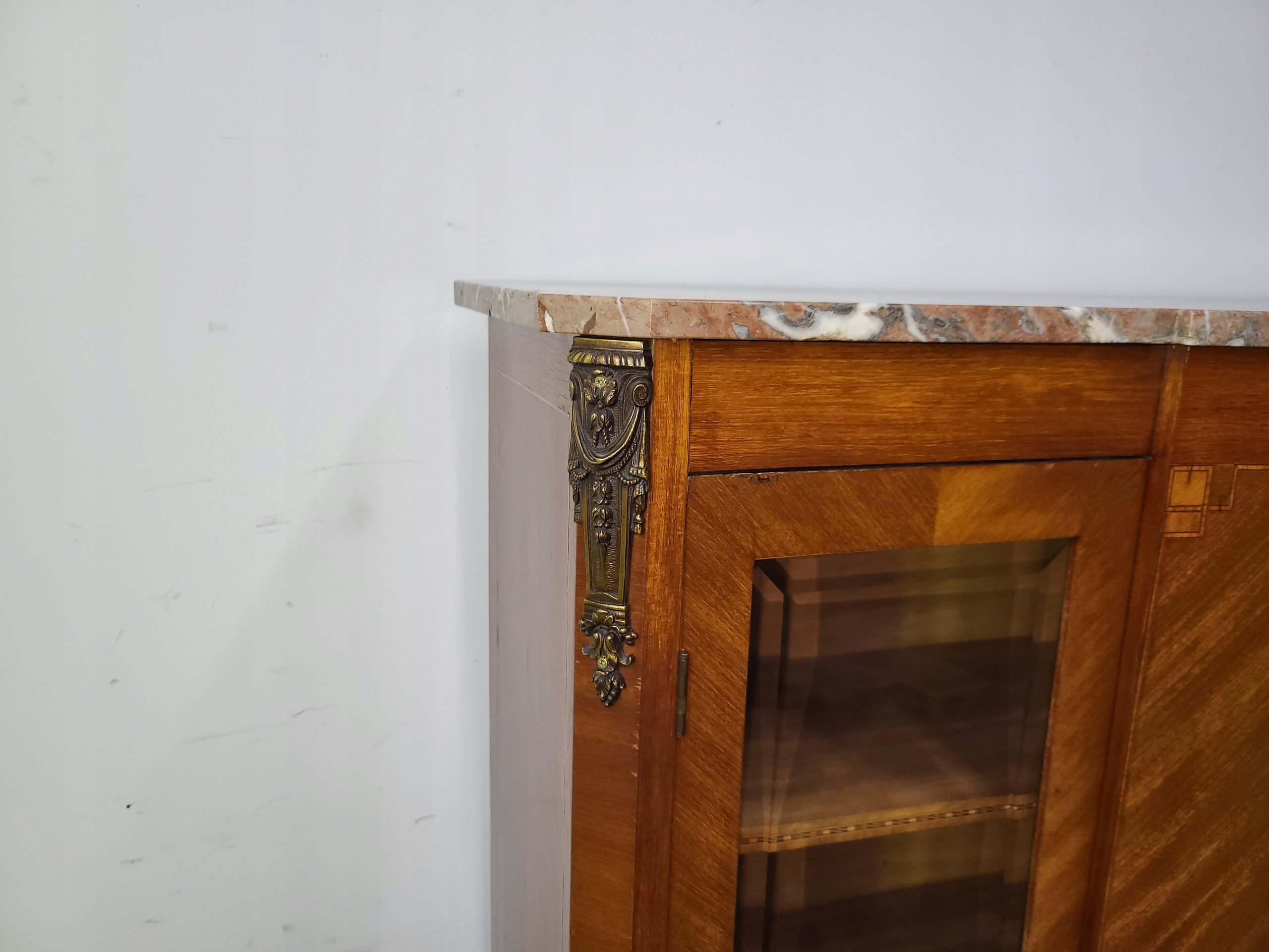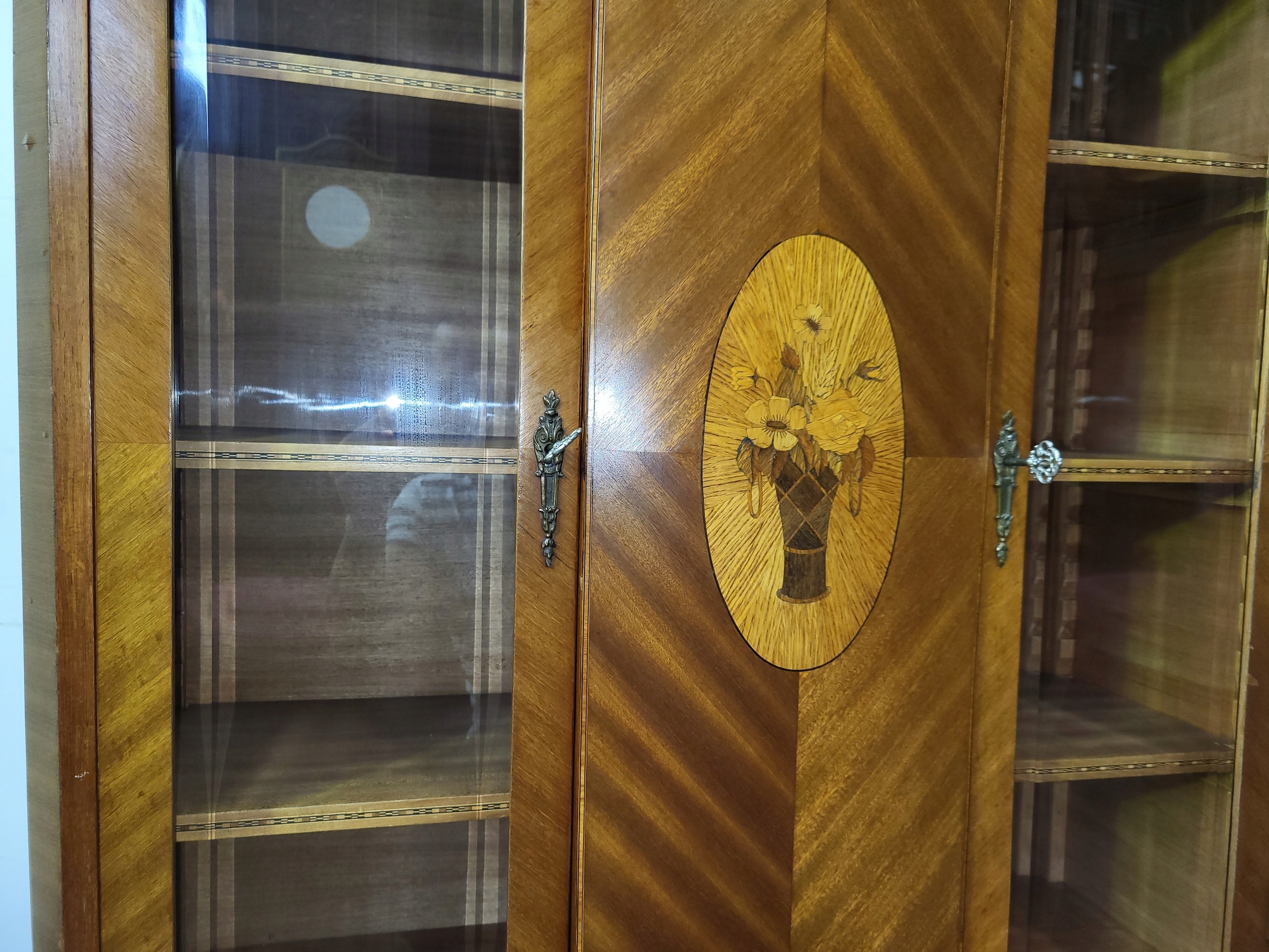 Елегантна шафа-вітрина Людовика XVI. Країна походження: Франція. Виготовлена з горіхового дерева. Замок працює, один ключ в комплекті.Гнуте скло, орнаменти з бронзи.Меблі вирізняються неймовірною елегантністю. Стан меблів дуже хороший.