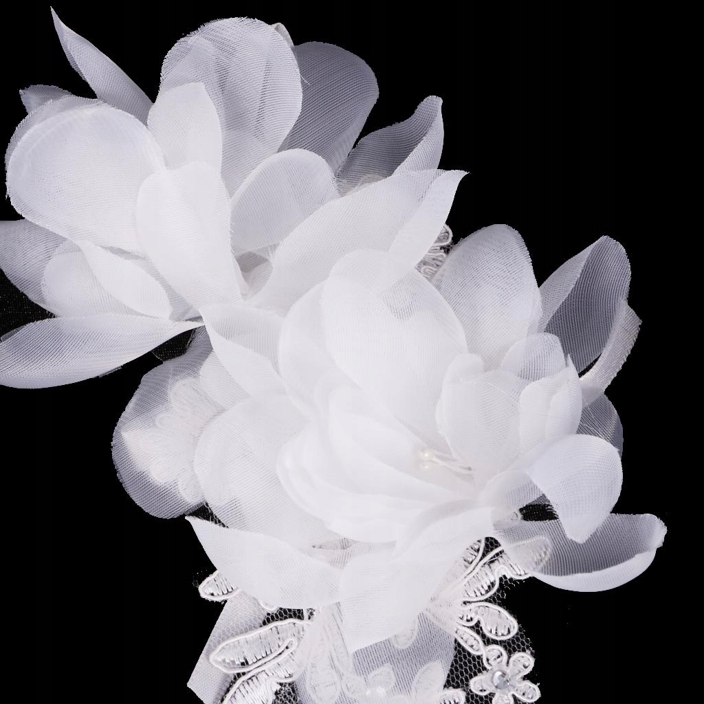 Красива прикраса шовку з квітами, мереживом, гірськими кристалами та білими перлами. 4