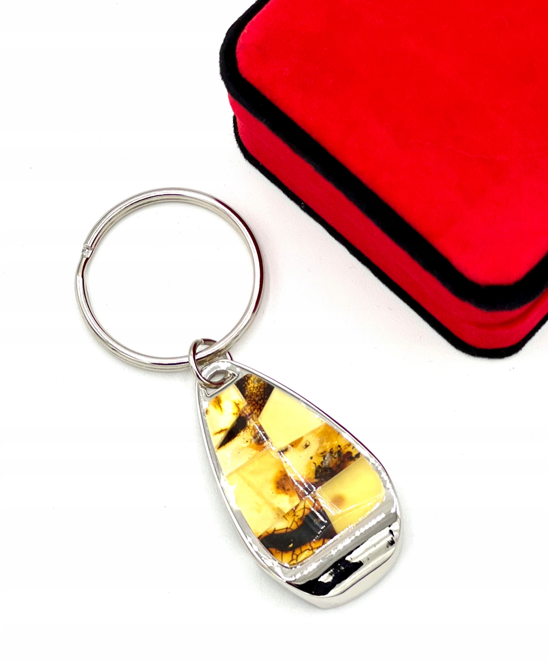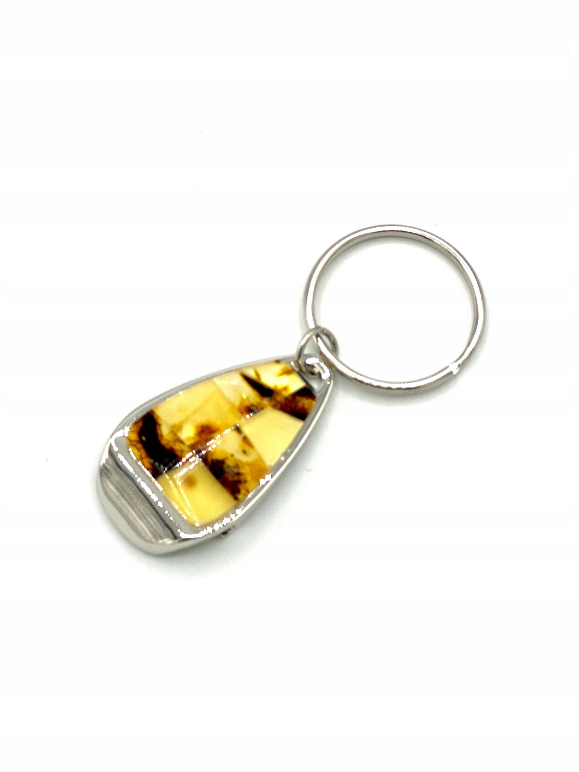 Брелок з бурштиновою мозаїкою з маленьких шматочків балтійського бурштину різних кольорів.