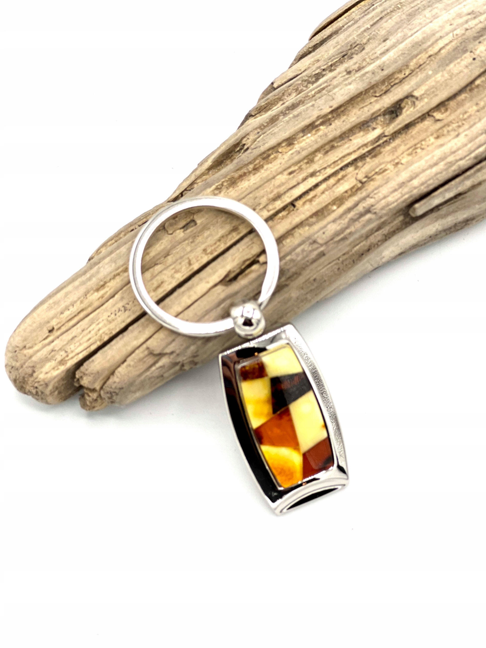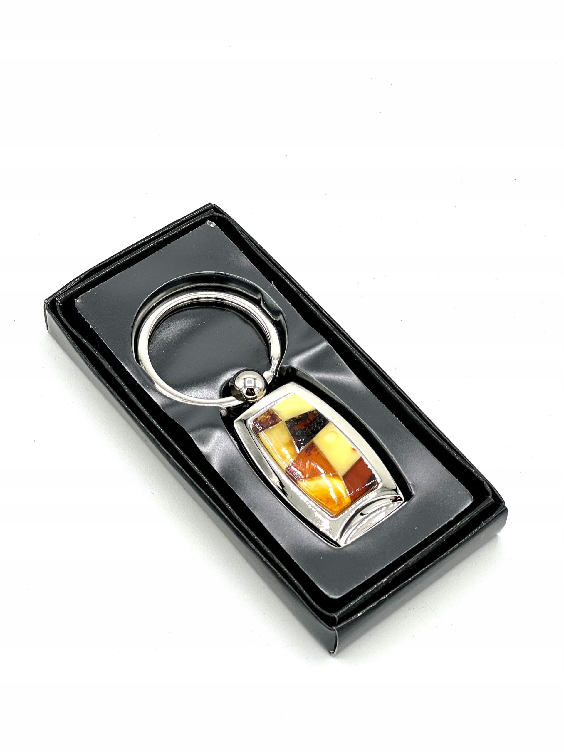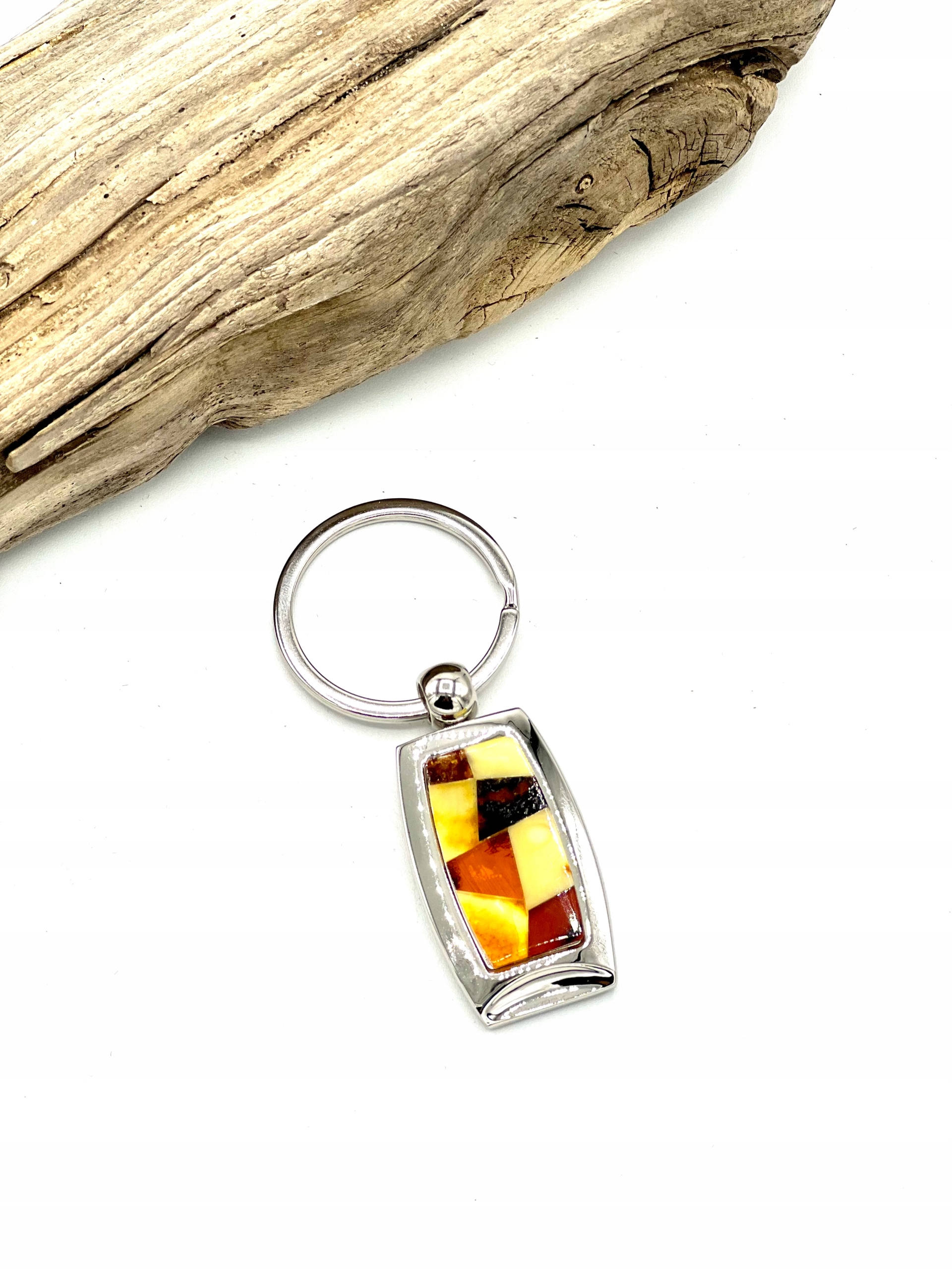 Брелок з бурштиновою мозаїкою з маленьких шматочків балтійського бурштину різних кольорів.