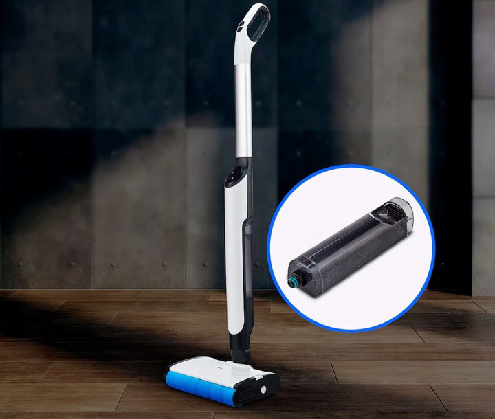Бездротовий зв'язок Сервіс робить очищення всіх популярних твердих підлог, таких як паркет, плитка та подібні поверхні, особливо зручні. Після використання агент для очищення зберігається на практичній станції з лоток для рулону.