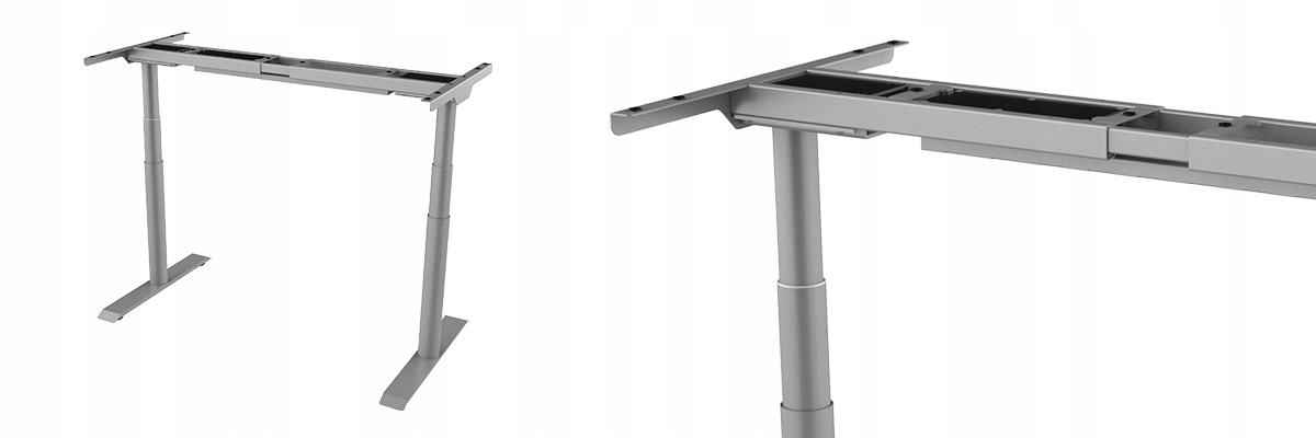 Електрична рама столу з інноваційною системою запобігання зіткненням. Працюйте стоячи або сидячи та відрегулюйте відповідну висоту завдяки регулюванню (600-1250 мм). Двомоторна система. Максимальна вантажопідйомність 125 кг. Швидкість до 38 мм/с. Сірий колір.