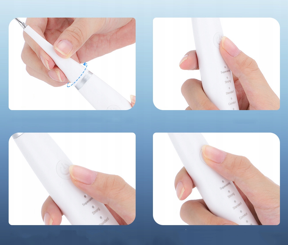 - 5 рівнів інтенсивності: кілька рішень для різних користувачів. Рівні, придатні для людей із сильними та чутливими зубами.
