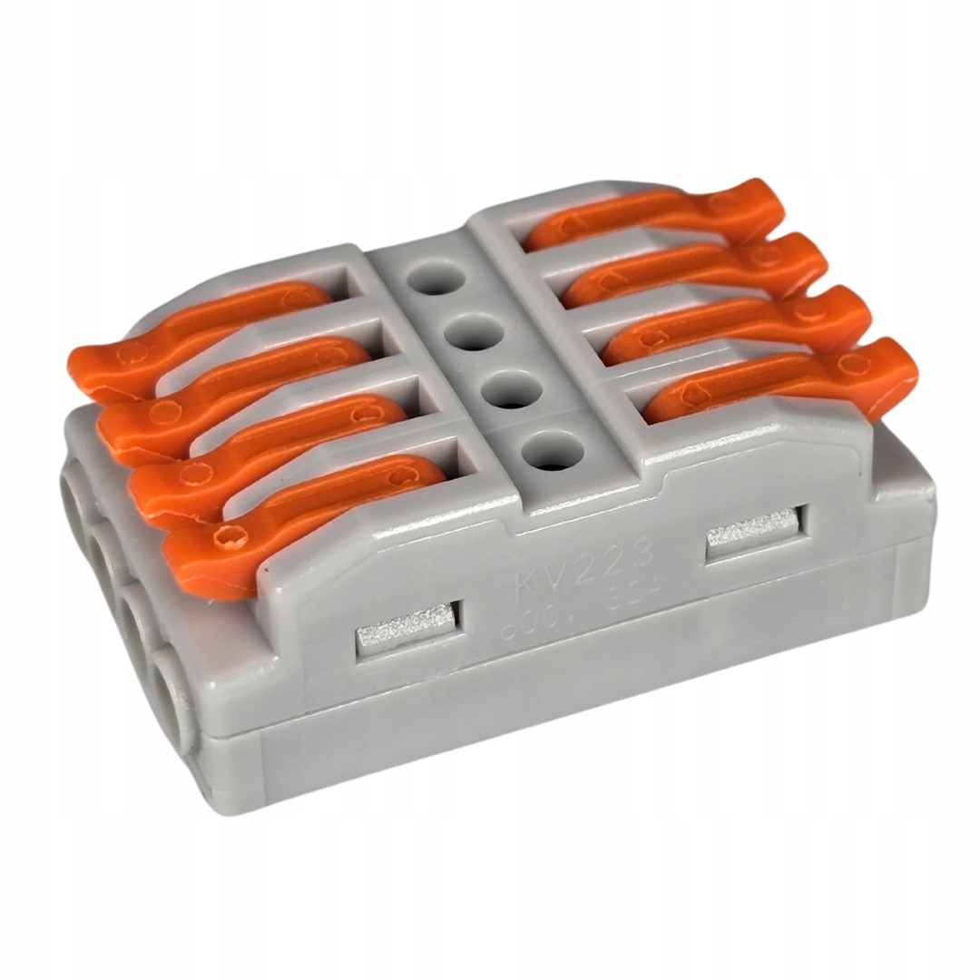 ☑ SPL4 Fast Connector - це чудова альтернатива іншим способам підключення електричних кабелів , таких як кубики кабелів або з'єднання смужок. Клієнти нашого магазину вибирають їх через простоту використання . Просто покладіть дроти в отвір і закріпіть їх важелем блокування. 4 Ви можете підключити жорсткі дротяні кабелі від 0,08 мм до 4,0 мм2.
