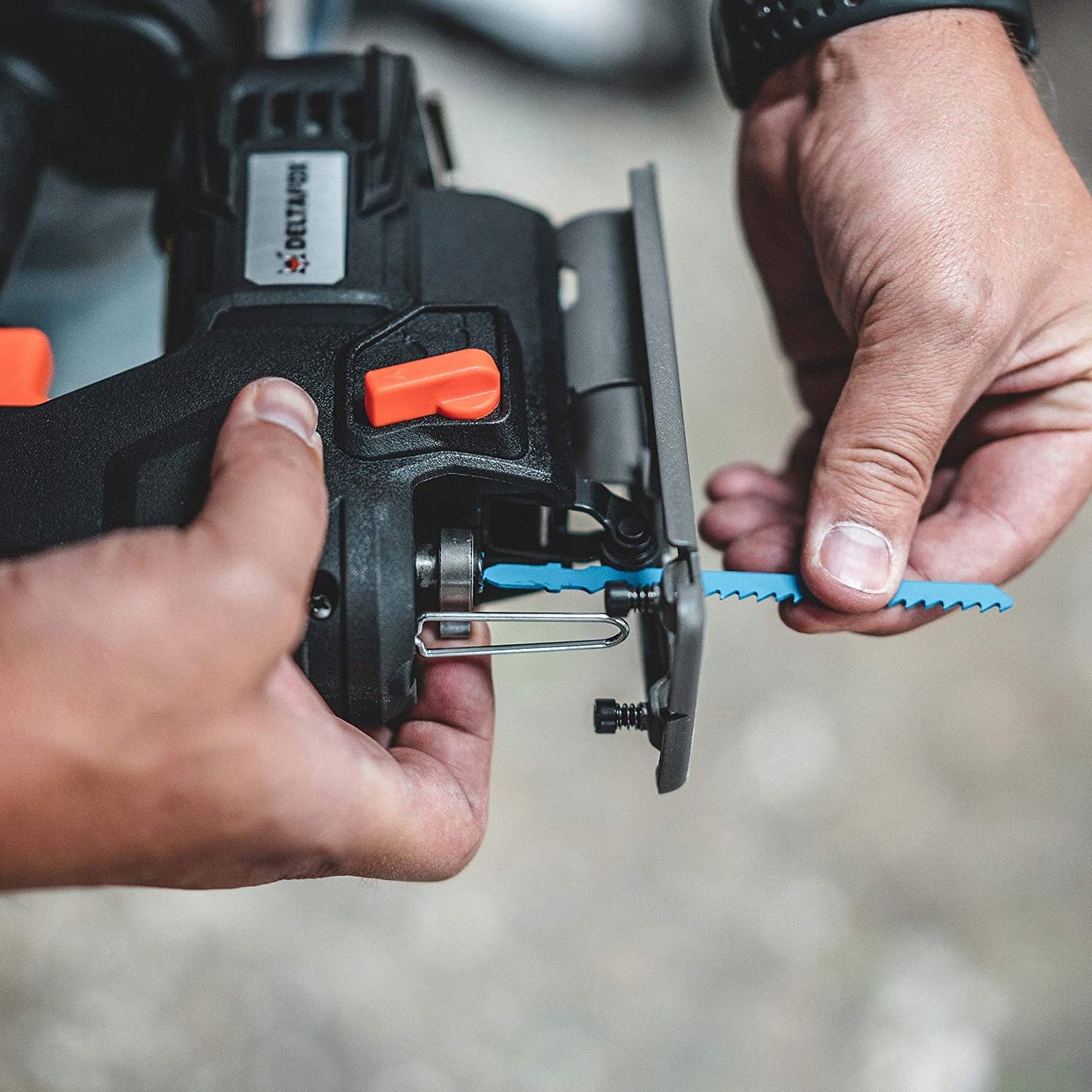 Лобзик DP-EJS 8080 від Deltafox є справжнім мультиталантом серед лобзиків. Оснащений лазером, плавним регулюванням швидкості, регульованою під кутом опорною пластиною та швидкозатискним патроном SDS із поворотним ходом, він полегшує роботу. Вбудований адаптер для зовнішнього пиловідведення дає змогу працювати в майстерні DIY без стружки. Пильні диски можна легко зберігати у вбудованому ящику для зберігання.