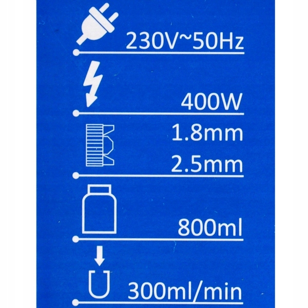 - Насадки в комплекті: 1,8 мм, 2,5 мм