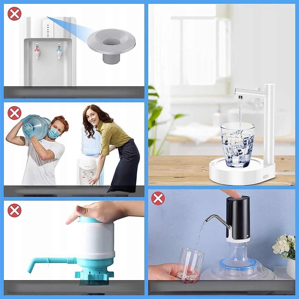 - Поставте силіконову водопровідну трубу в галонну пляшку і натисніть кнопку, щоб накачати воду. 1, 2, 3, 4, 5, 5 та 6 галонів або інші пляшки стандартних розмірів. Дно до пляшки з водою). ідеально підходить для використання всередині та зовні,