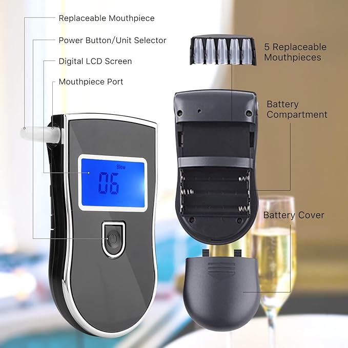 Цей аналізатор вмісту алкоголю використовує точний напівпровідниковий датчик алкоголю, який дає швидкі та точні результати. Після повторного контролю якості та калібрування він довговічний і надійний, тому ви можете вирішити, чи можете ви керувати автомобілем після вживання алкоголю. Для служби просто натисніть кнопку. Використовуйте 3 батареї AAA (без акумулятора), тому вам не потрібно турбуватися про зарядку цього пристрою. Просто покладіть мундштук і зачекайте 15 секунд, поки він не зігріється. Потім видобуть принаймні 5 секунд пристроєм для вимірювання вмісту алкоголю в повітряному повітрі, а результат вимірювання відображатиметься на РК -екрані. H1>