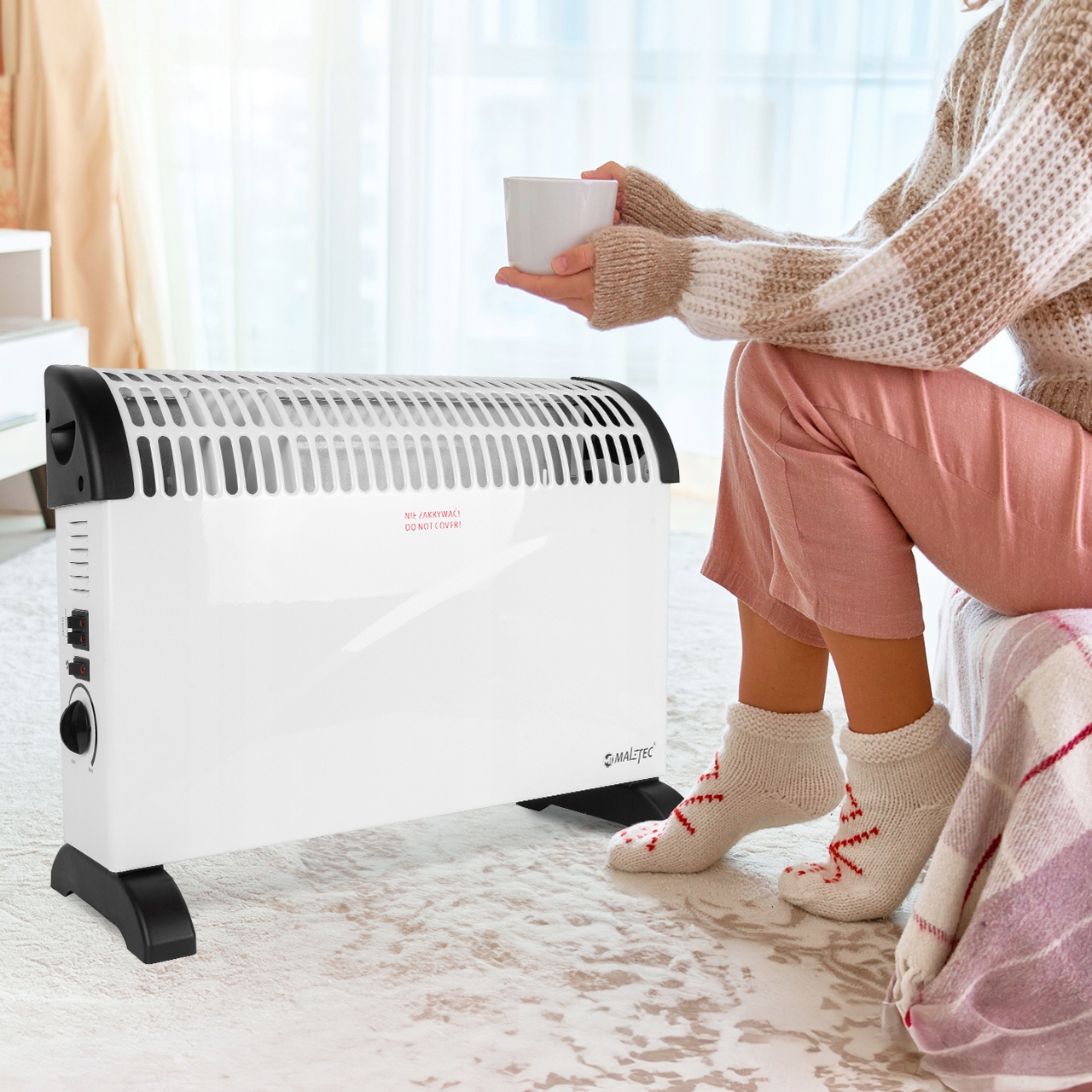 Обігрівач має термостат, який автоматично вимикає пристрій, коли температура в кімнаті досягає встановлене значення. Обігрівач не працює весь час - економить енергію. Конвекторний обігрівач використовує нагрівання циркулюючого повітря, що забезпечує майже миттєве відчуття підвищення температури.