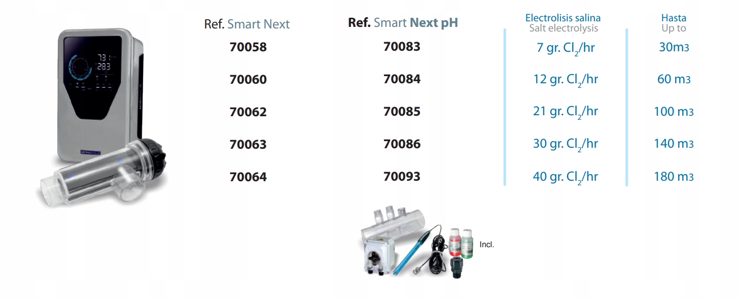 Електролізер для солі Smart Next 70063 генерує 30 г Cl2 на годину.