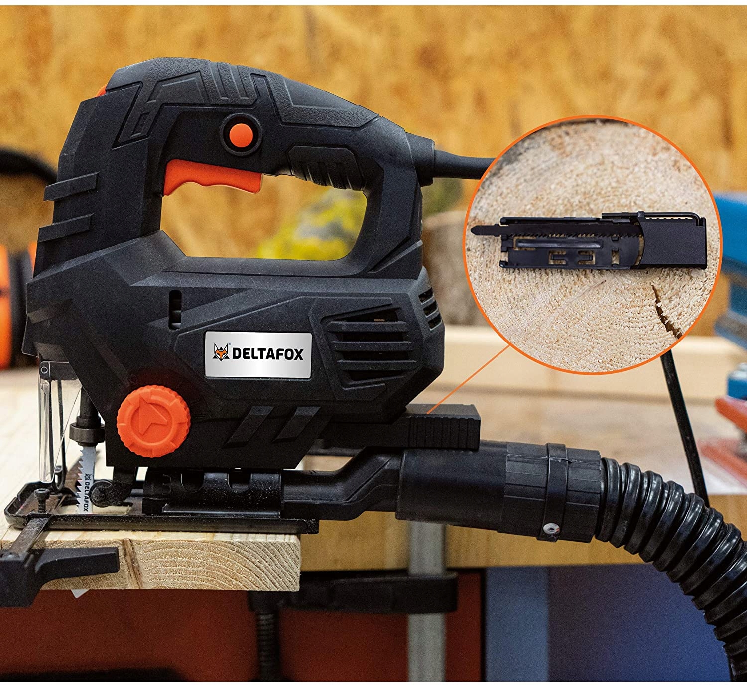 Лобзик Deltafox DP-EJS 6580 від GRIZZLY — справді універсальний лобзик. Оснащений лазером, безступінчастим регулюванням швидкості, регульованою під кутом опорною пластиною та швидкомонтованим патроном SDS із 3-ступеневим поворотним ходом, він значно полегшує роботу. Вбудований адаптер для зовнішнього пиловідведення дозволяє працювати в майстерні DIY без тирси. Лобзик сумісний з усіма доступними на ринку пильними полотнами з Т-подібним хвостовиком. Їх можна легко зберігати у вбудованому ящику. Полотно для пилки по дереву вже входить в комплект поставки. Потужний мотор має потужність 650 Вт і швидкість до 3100 об / хв.