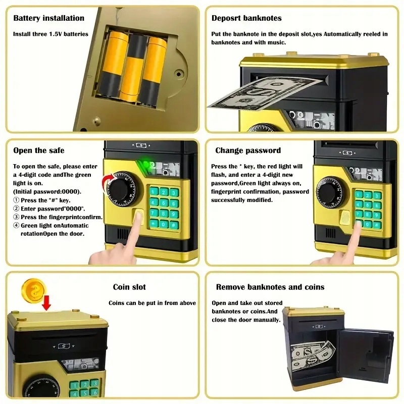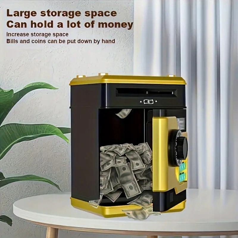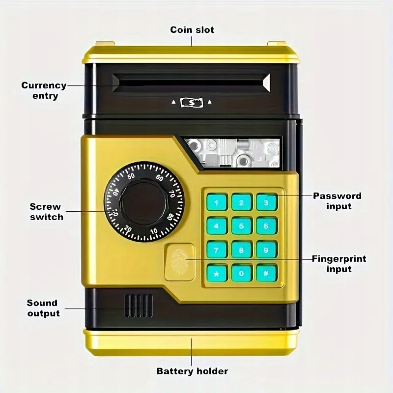 Чорний та Золотий елегантний безпечний/ Пігницький банк захистить заощадження наших дітей, і в той же час він чудово працює в грі.