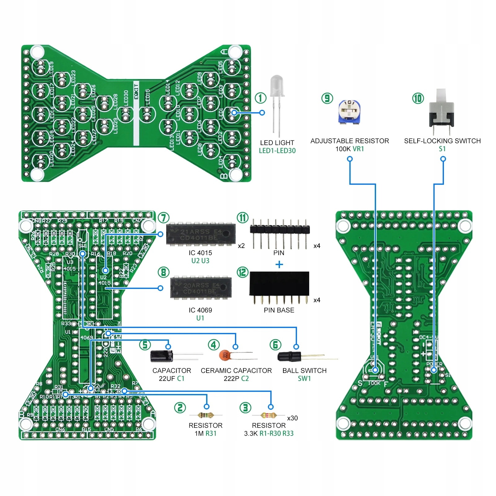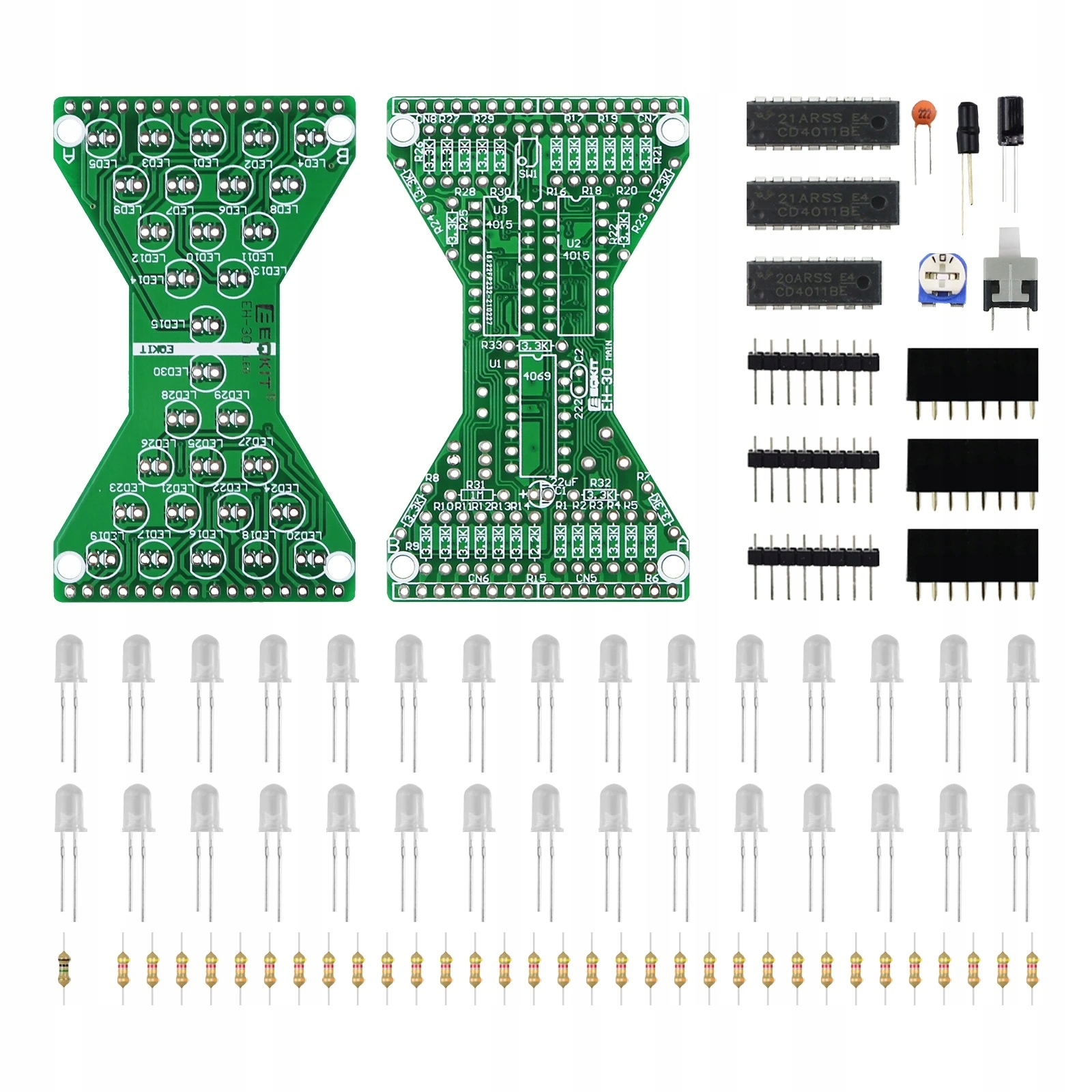 Системи мають на пластині схему друкованої збірки. Вам потрібно звернути увагу на полярність за такі елементи, як конденсатори, діоди, транзистори. У випадку світлодіодів довша нога - це плюс +, більшість елементів описали параметри на корпусі. Резистори можуть мати позначення смужок, їх опір та толерантність можна прочитати за допомогою калькуляторів, доступних в Інтернеті або вимірюванням лічильника. Порядок складання зазвичай безкоштовний, залежно від системи, ми спочатку встановлюємо найменші елементи.
