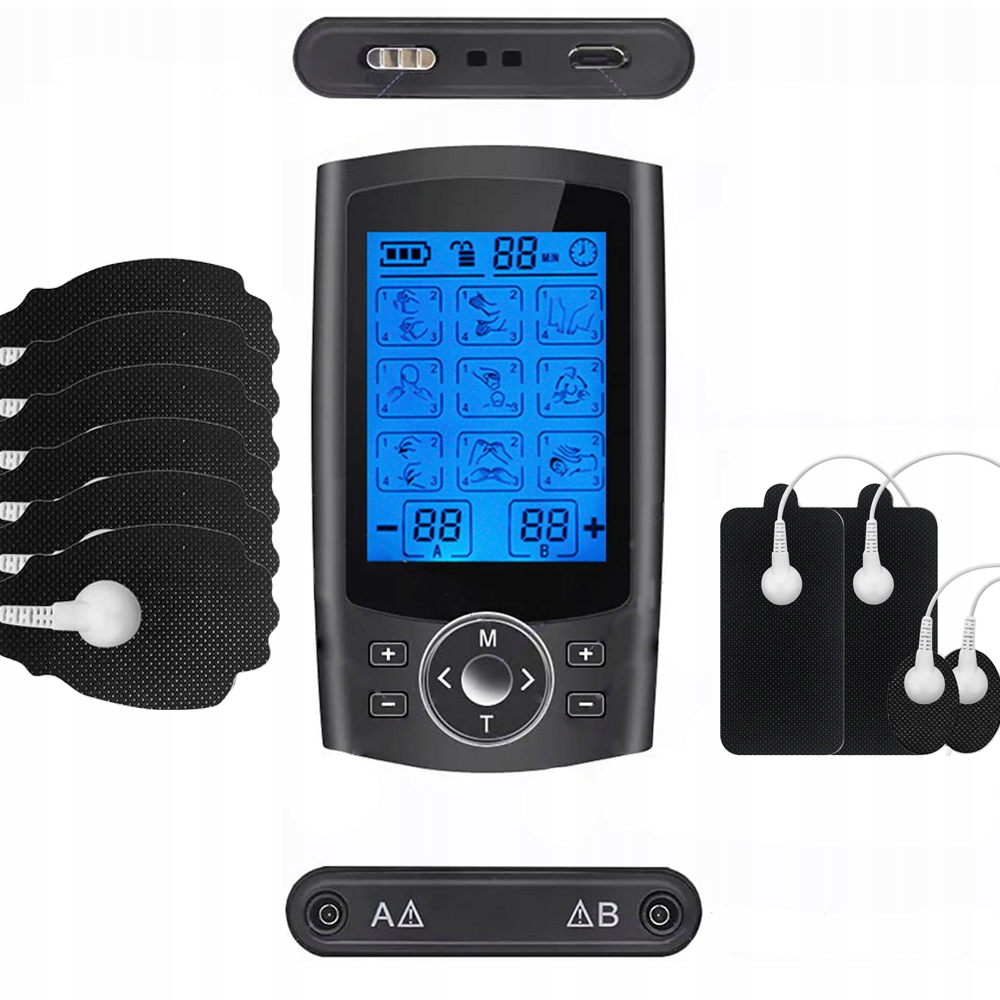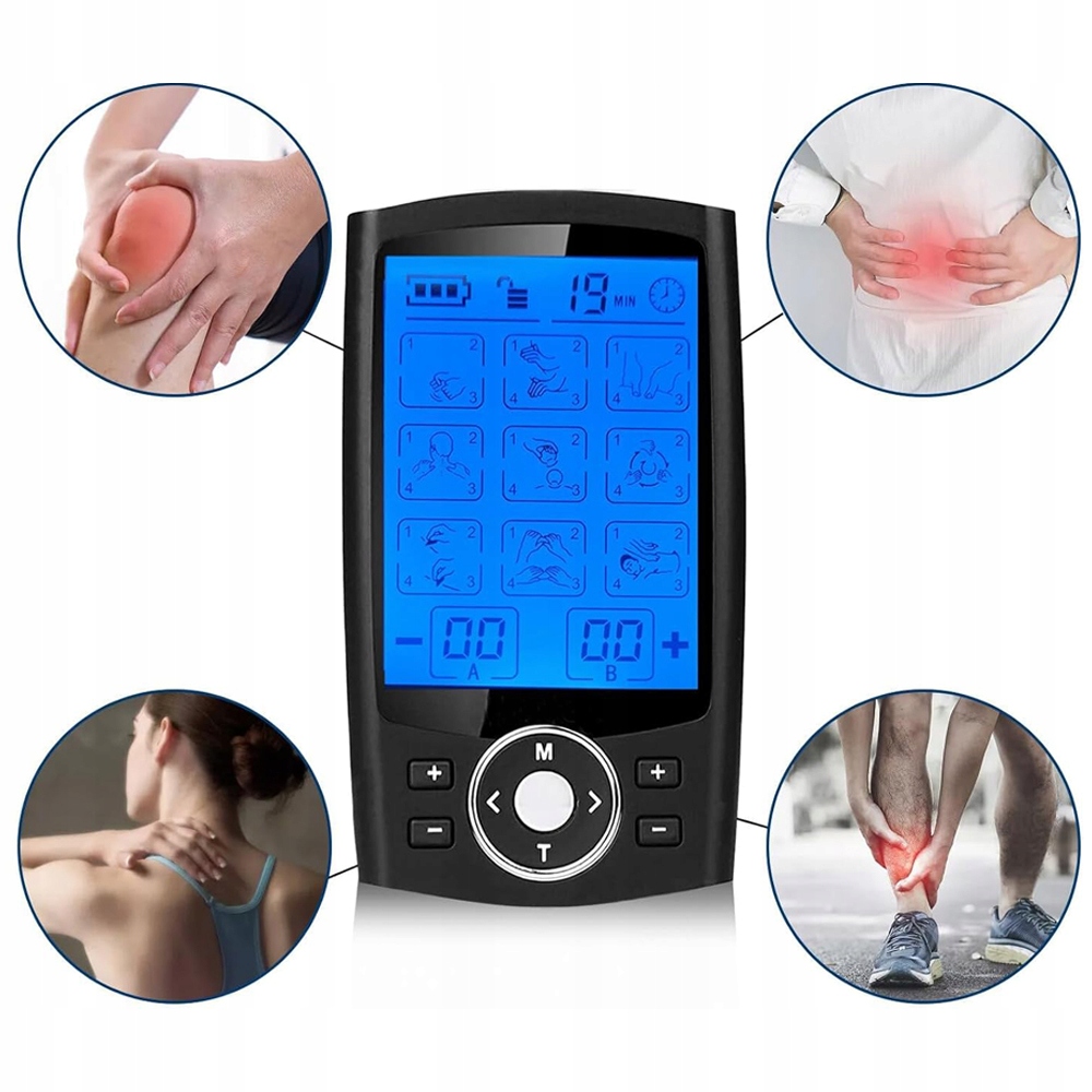 - - Терапія TENS використовується для імітації ручного масажу, допомагаючи поліпшити кровообіг, полегшити біль у всьому тілі та розслабити м’язи. (Натисніть кнопку "M", щоб змінити режим). який можна легко регулювати, натиснувши кнопку "+/-", щоб збільшити або зменшити інтенсивність. І рівень акумулятора спалахує, коли вам потрібно зарядити його.