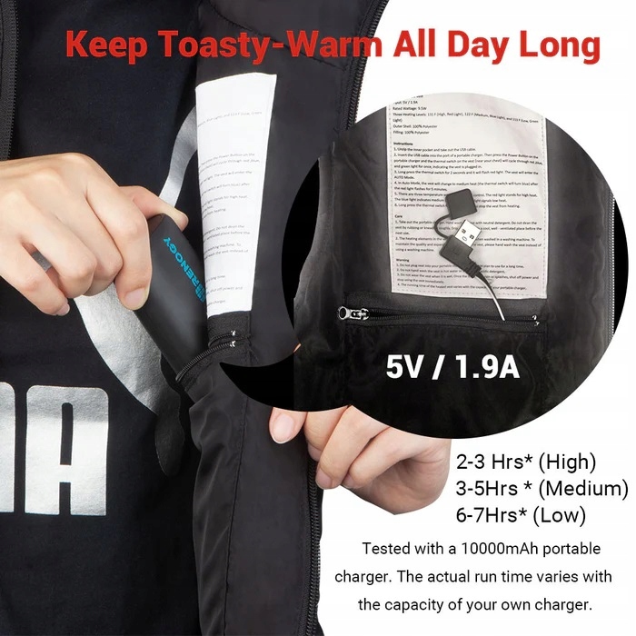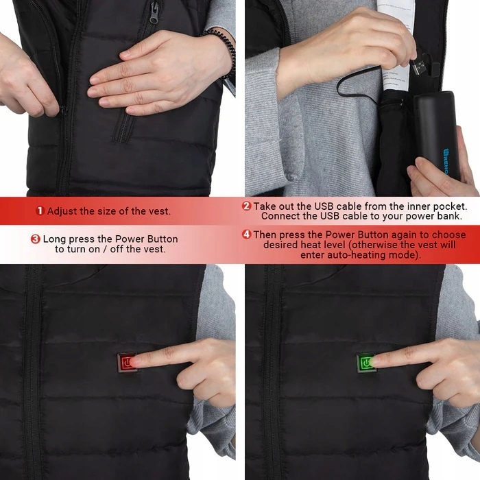 Elektryczna unisex podgrzewana kamizelka lekka regulowany rozmiar M-L