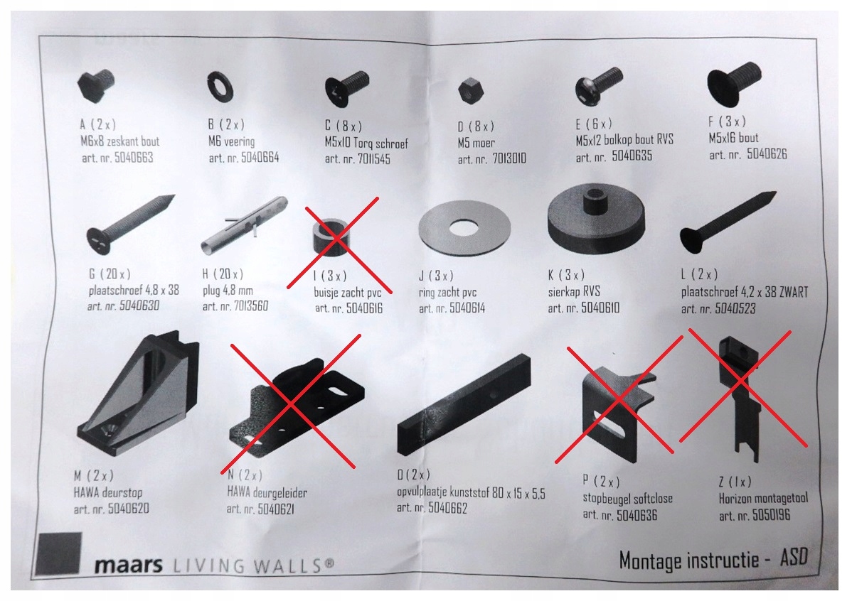 МОНТАЖНІ ЕЛЕМЕНТИ СИСТЕМИ ASD MAARS HORIZON METALINE STRING STYLELINE GLAS SOFTCLOSE