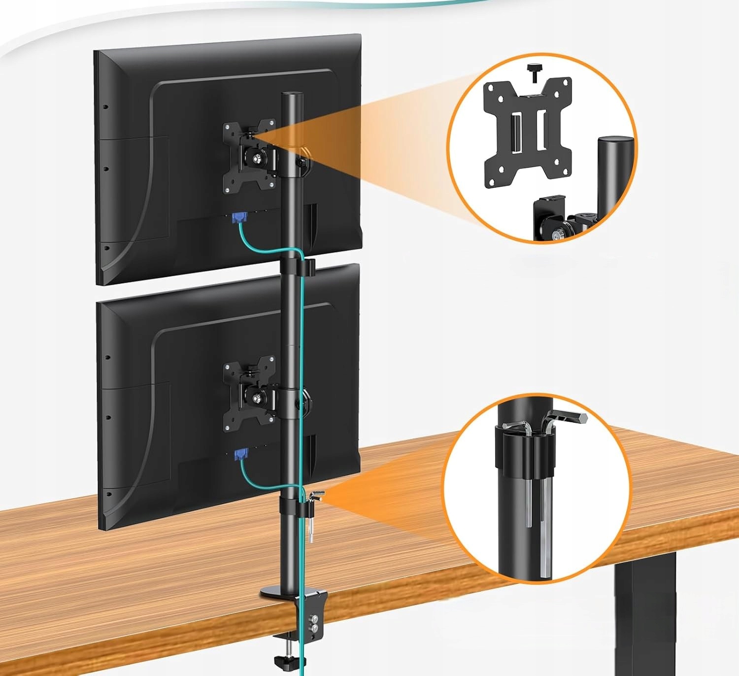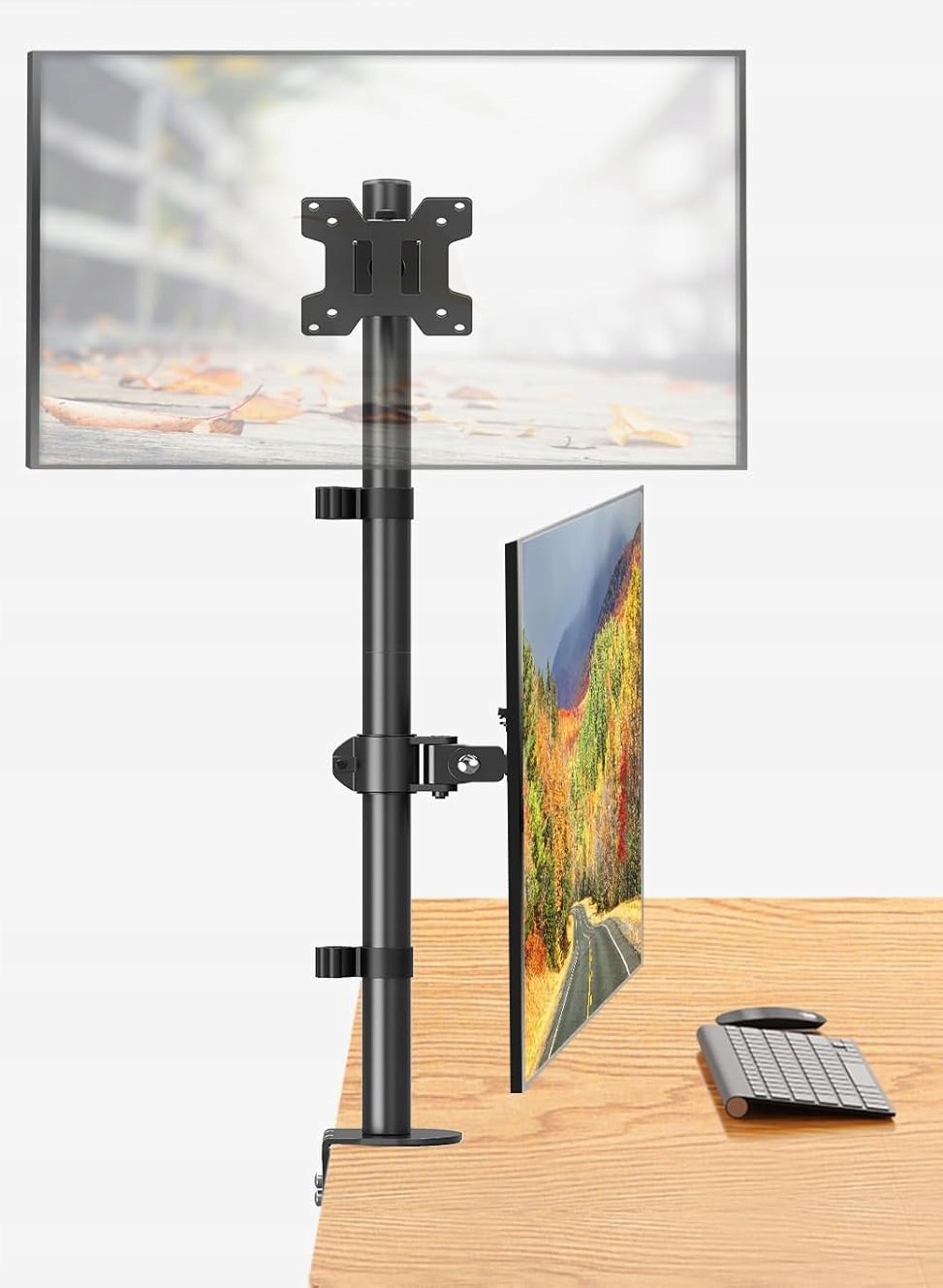 - Багато варіантів регулювання - цей монітор ручки 2 моніторів можна нахилити вгору і вниз на ± 30 °, обертати на ± 90 ° ліворуч і праворуч, обертайте на 360 ° і легко регулюють висоту по стрижню довжиною 806 мм, щоб отримати кращий вигляд. Монітори можна встановити у вертикальній або горизонтальній орієнтації.