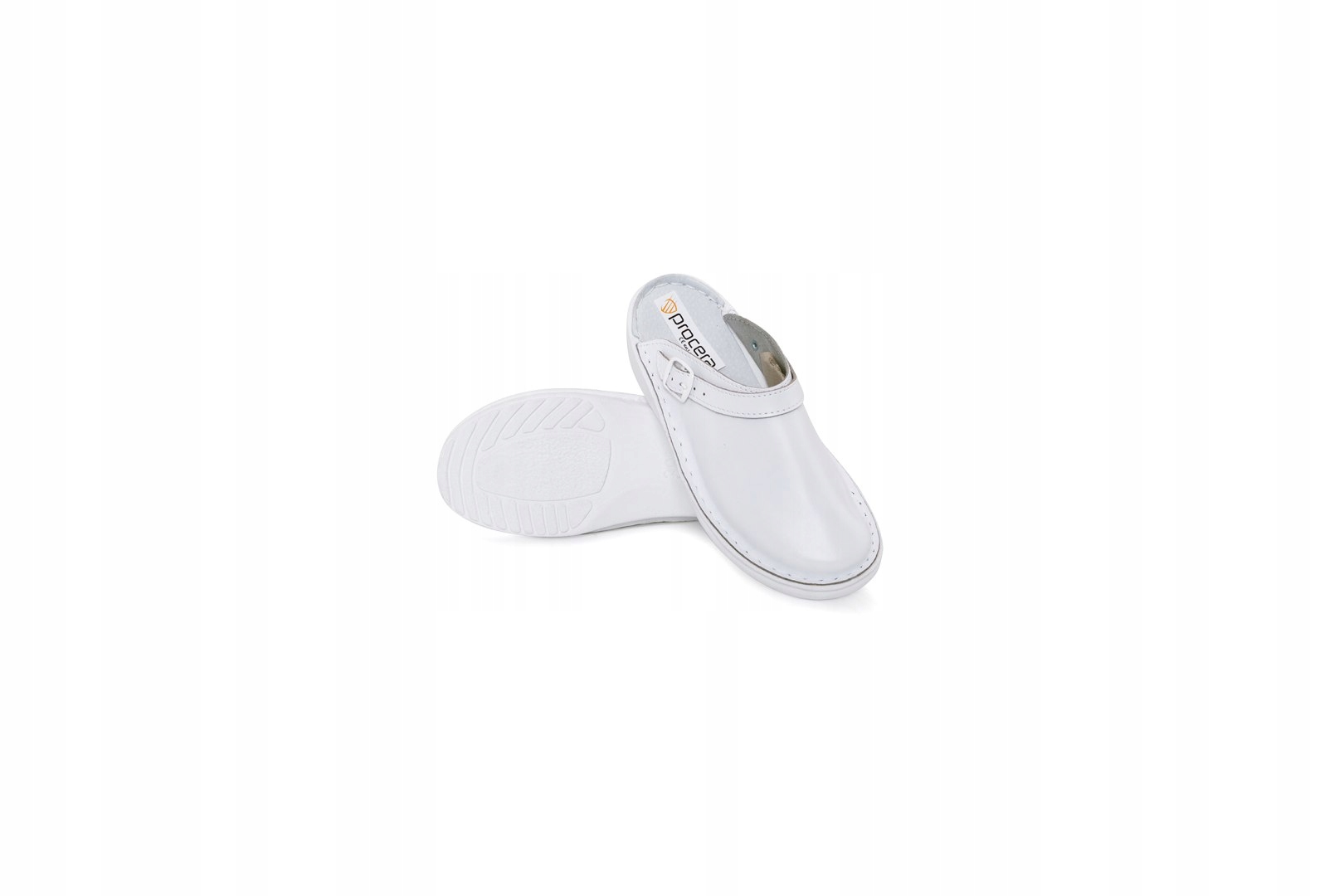Профілактичне взуття, виготовлене з шкіри корів, покрита спеціальною мембраною для легкого очищення, дезінфекції та обслуговування. Верхній закритий, на підборах, запущеному подвійним ременем, запущеним. Натуральна шкіряна підкладка. Дно з поліуретаном, що не є, внутрішнім ортопедичним профілем. Зверху підключений до нижнього ручного шиття. Взуття ідеально підходить для використання в галузі охорони здоров'я та комерційних та харчових послуг. Розміри: 36-40.