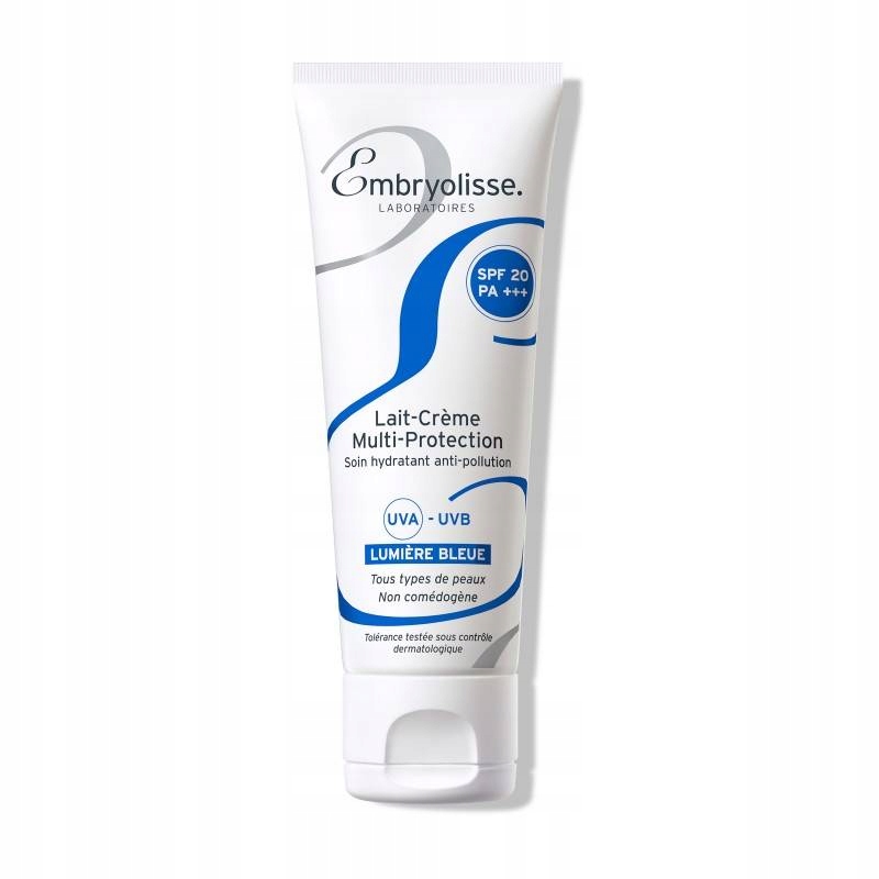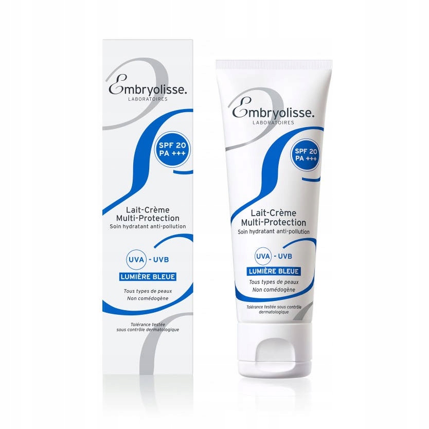 lait creme multi -захист ембріоліс. крем для обличчя. Він був створений для щоденного догляду за всіма типами шкіри, навіть чутливим. Завдяки вмісту у складі фільтра SPF20 він захищає від шкідливого випромінювання УФА/УФБ, синього світла та забруднення. Крім того, він має сильний зволожуючий, живильний та анти -старе ефект. Ідеально підходить як основа Make -up. Формула вершків не засмічує пори, але вона залишає атласну обробку на шкірі. Косметика містить алое вера, соєві білки, масло ши, бджолиний віск. Трубка, в якій розміщується продукт, виготовляли у 50% переробленого пластику і підходить для переробки.