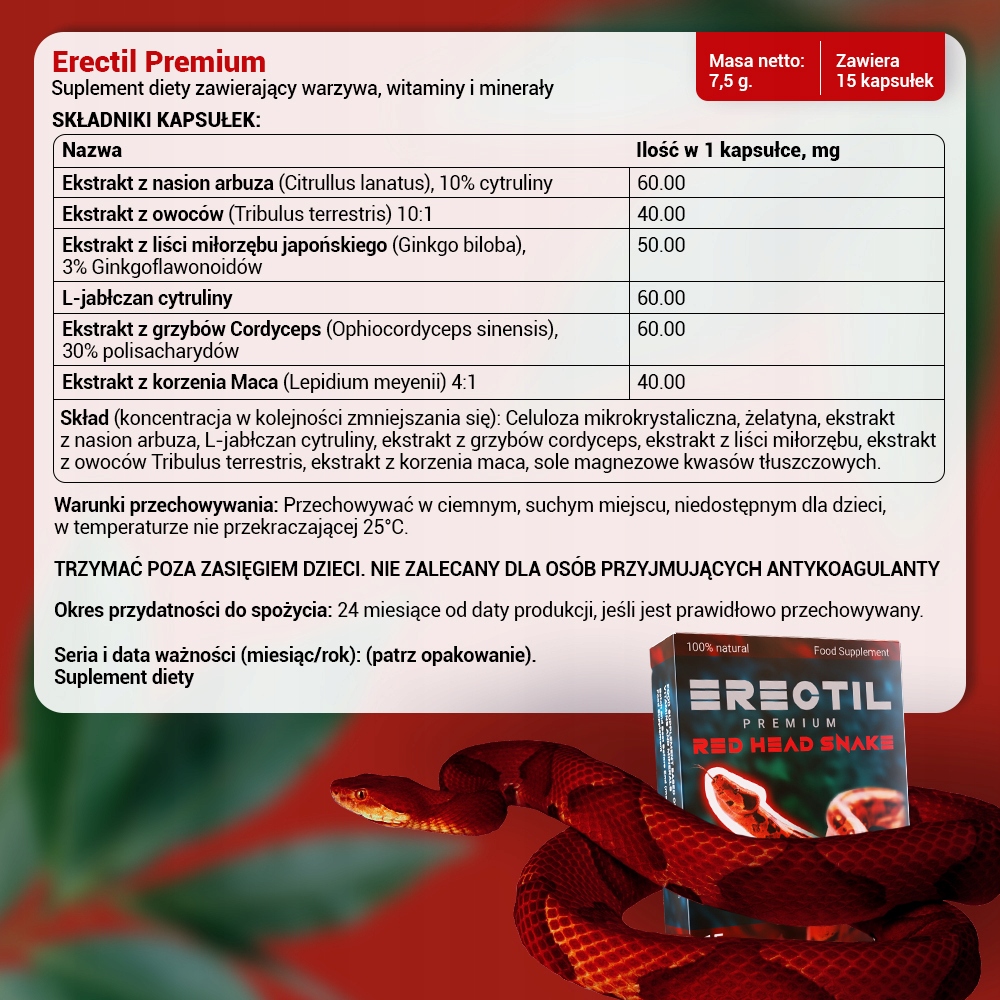 екстракт кордицепса та L-малат цитруліну, Erectil Premium підтримує не тільки базову ерекцію, але й підтримує її протягом тривалого періоду часу, що дозволяє менше і більше статевого акту.