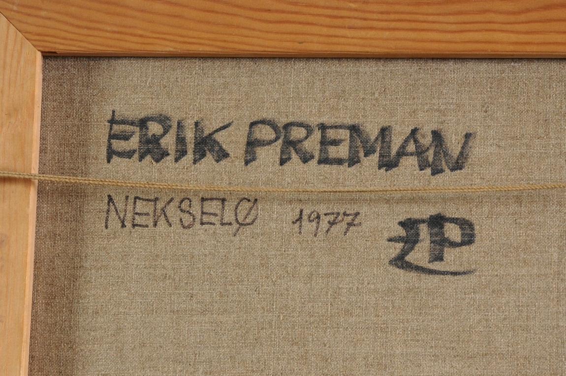 - У нижньому правому куті є підпис Художника - монограми (Ерік Преман) і картина підписана на звороті.