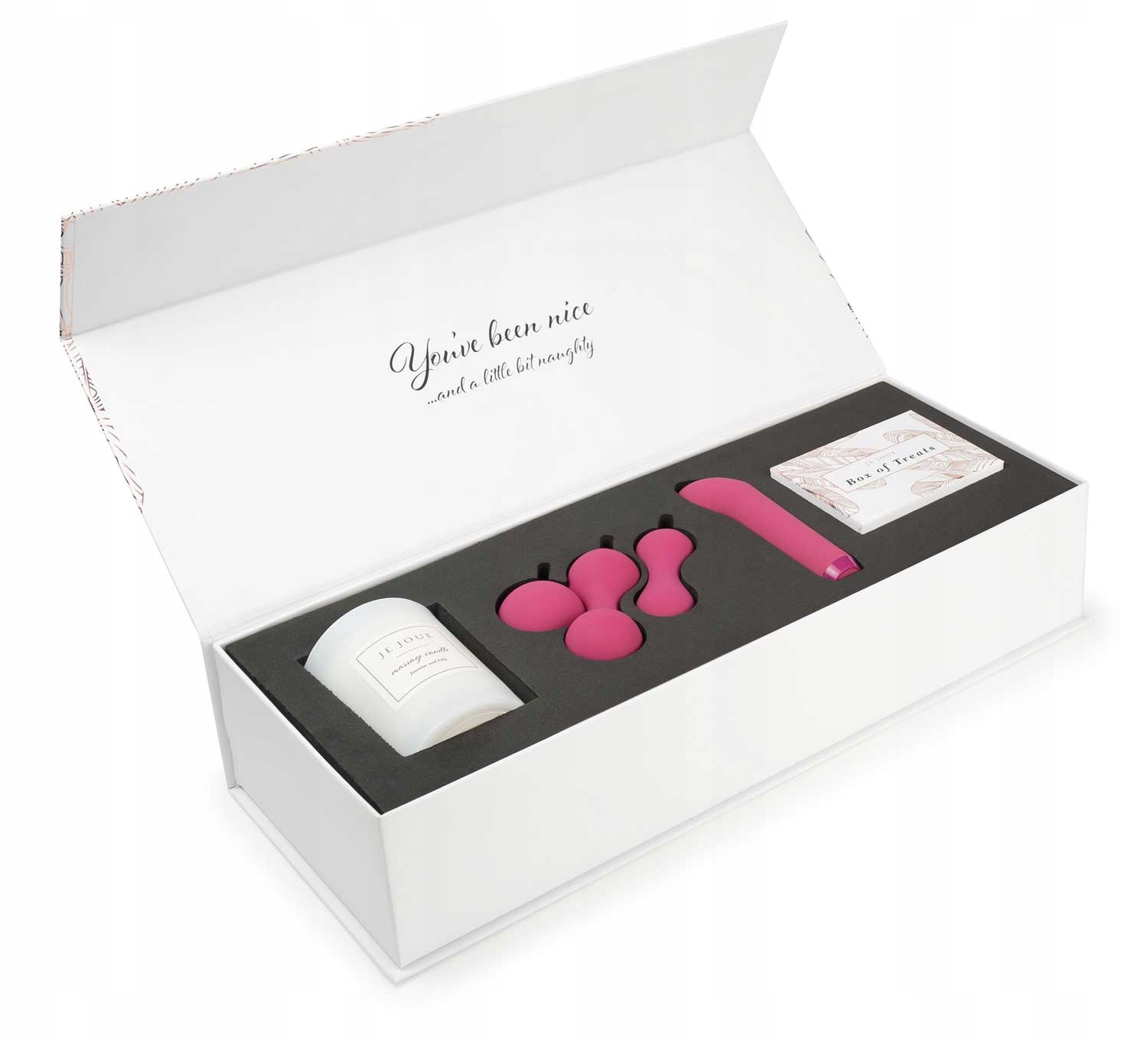 Цей лімітований набір включає в себе популярний вібратор для точки G із рукавом для пальців, набір кульок Кегеля, розкішну масажну свічку та набір карток прихильності.