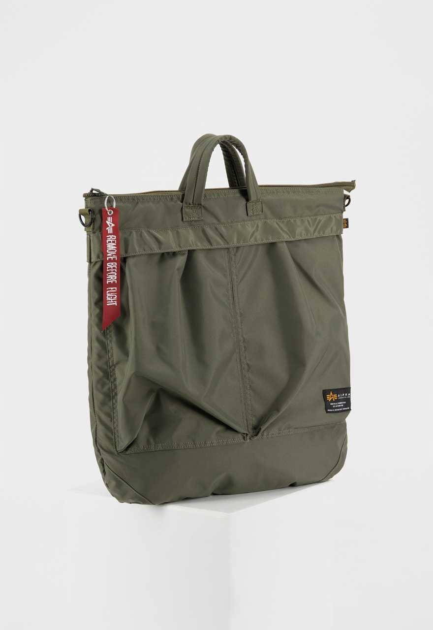 Він виготовлений зі зміцненого нейлону з просоченням, має кілька кишень і водонепроникну підкладку. Має класичні «вушка» і міцний знімний ремінь з регульованою довжиною, тому його можна носити і на плечі.