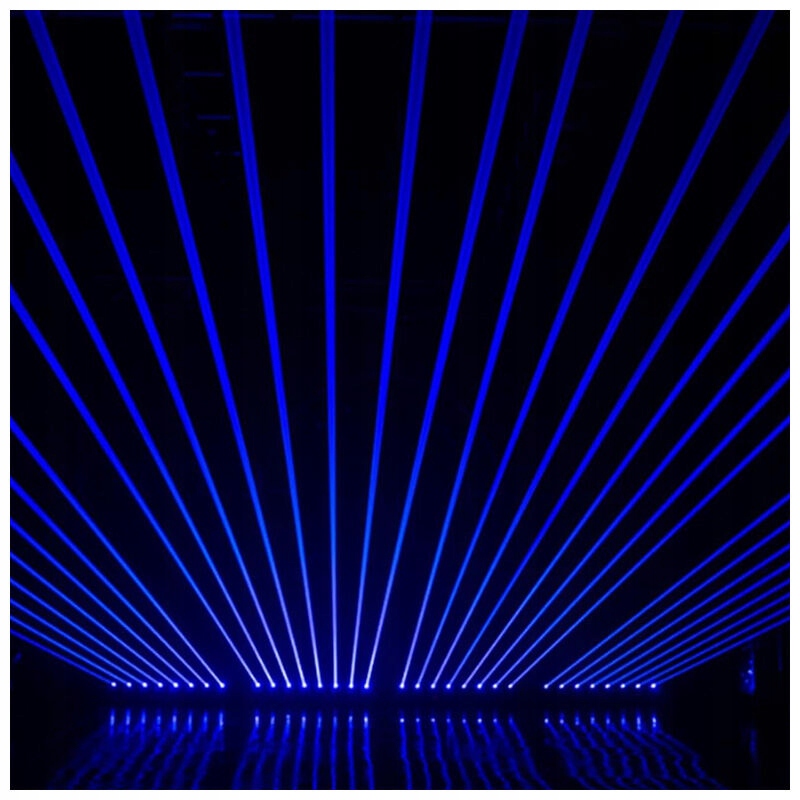 Професійне, що робить дивовижне враження етапне ефект у вигляді лазерної смуги , оснащеної входом і виводом DMX, а також вхідною та вихідною потужністю. Пристрій випромінює лазерні промені із загальною потужністю 500 illigints в червоному, зеленому та синьому кольорі, створюючи таким чином барвистий, наповнюючий простір лазерного шоу . Завдяки strobe, вбудованому ефекти та макро , він чудово працює на професійних музичних сценах, у мобільній роботі діджеїв , театрів та дискотеки .