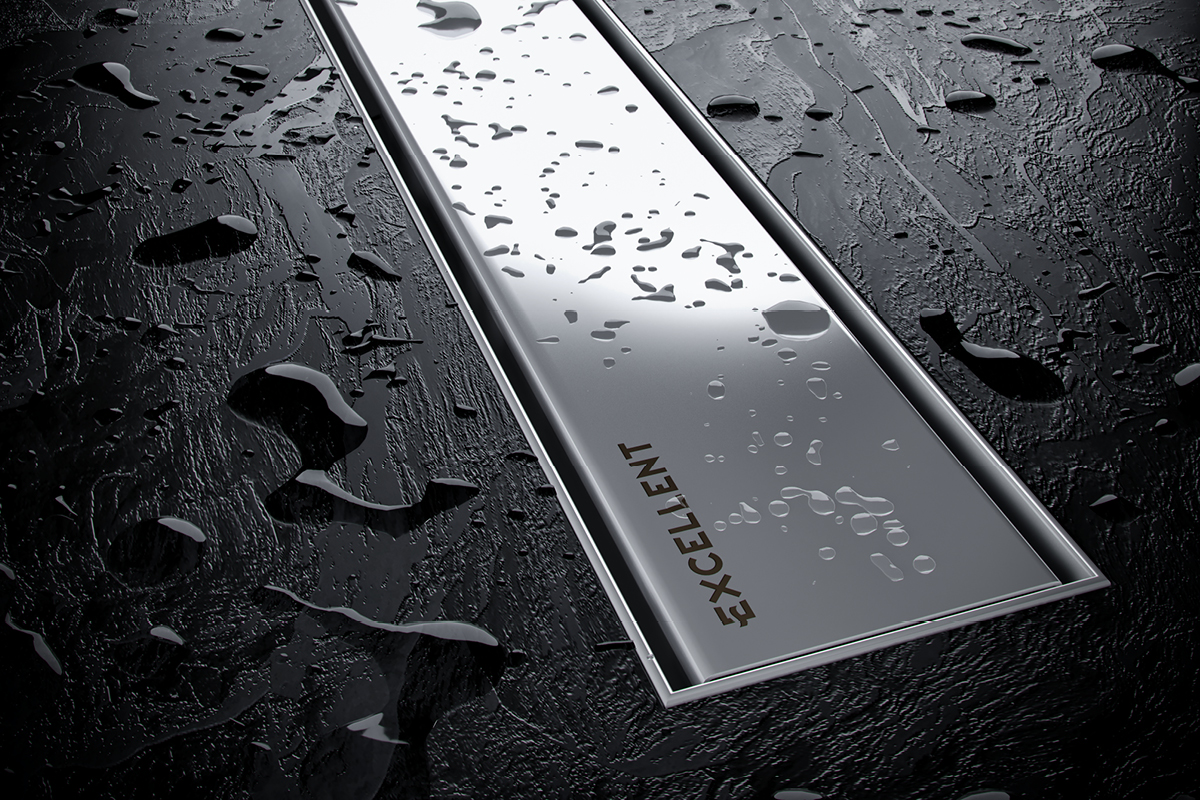 EXCELLENT Лінійний злив Stilio 80 см з фланцевою декоративною решіткою, полірована нержавіюча сталь